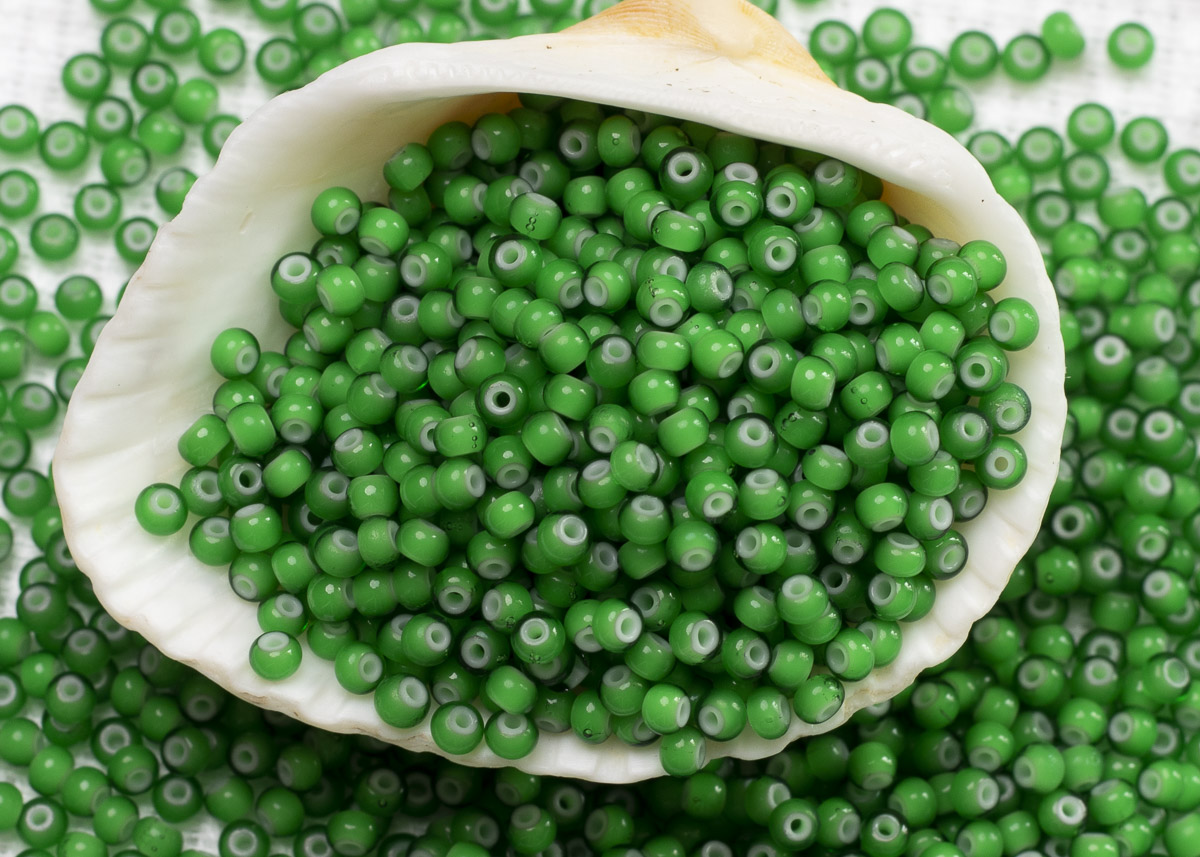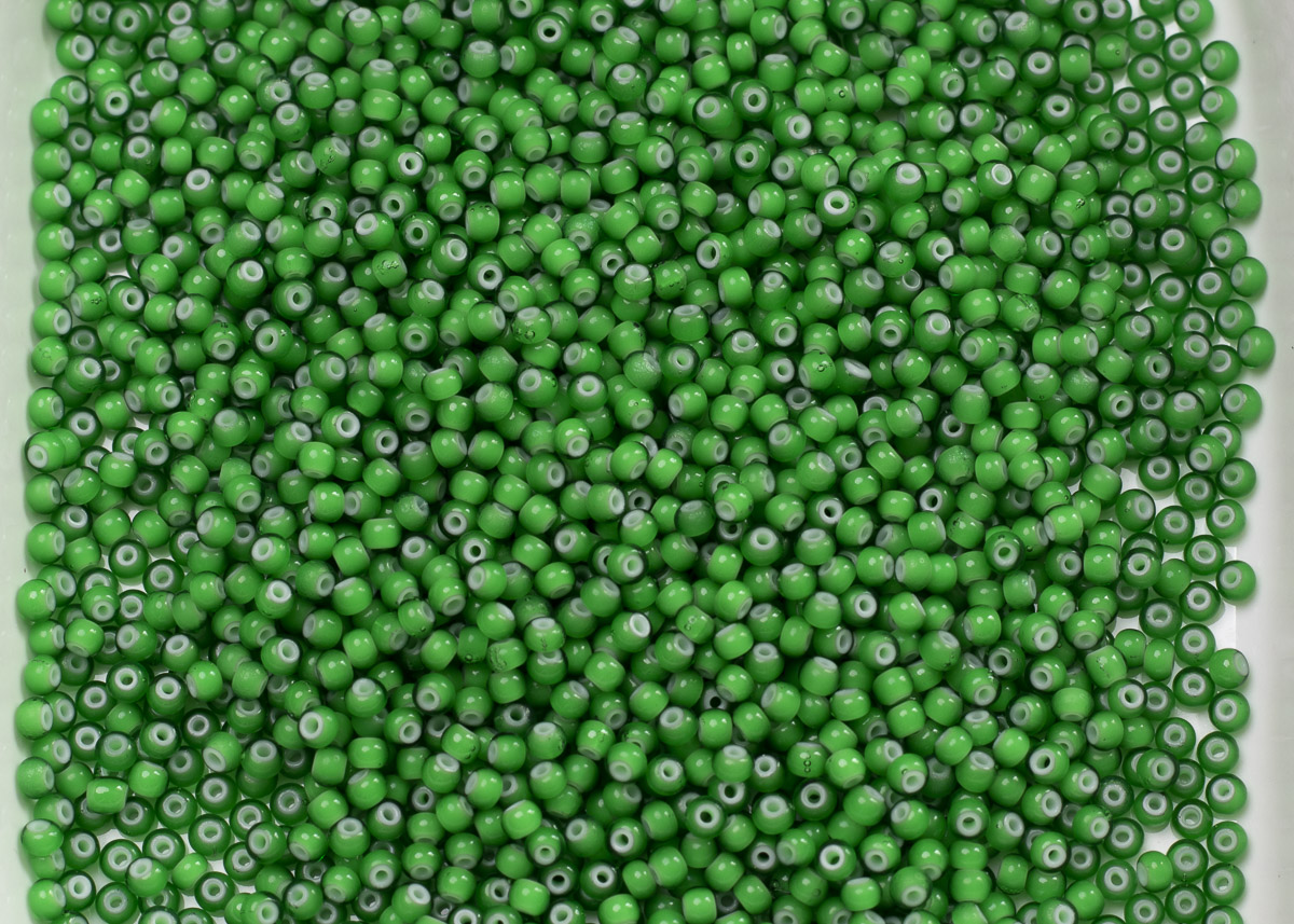 Бисер Чехия круглый 10/0 500г 53712 зеленый с белой серединой