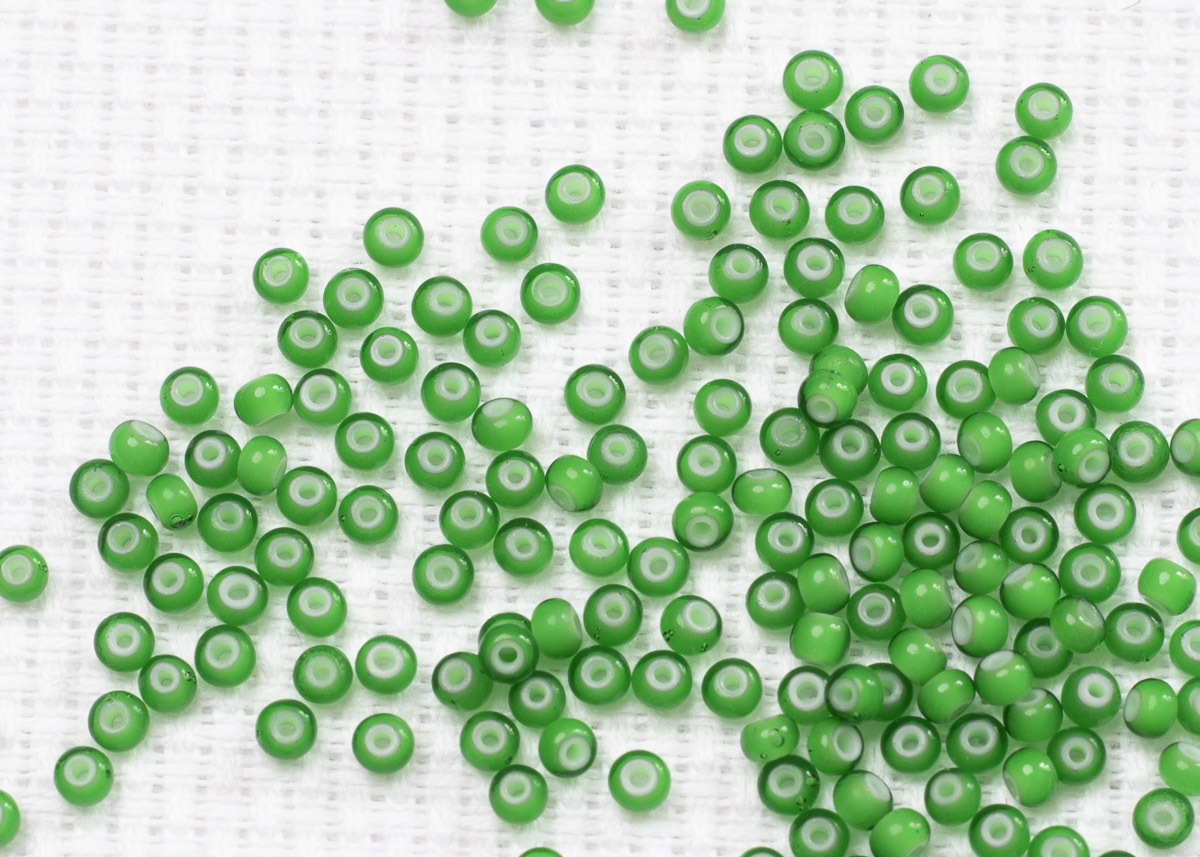 Бисер Чехия круглый 10/0 50г 53712 зеленый с белой серединой