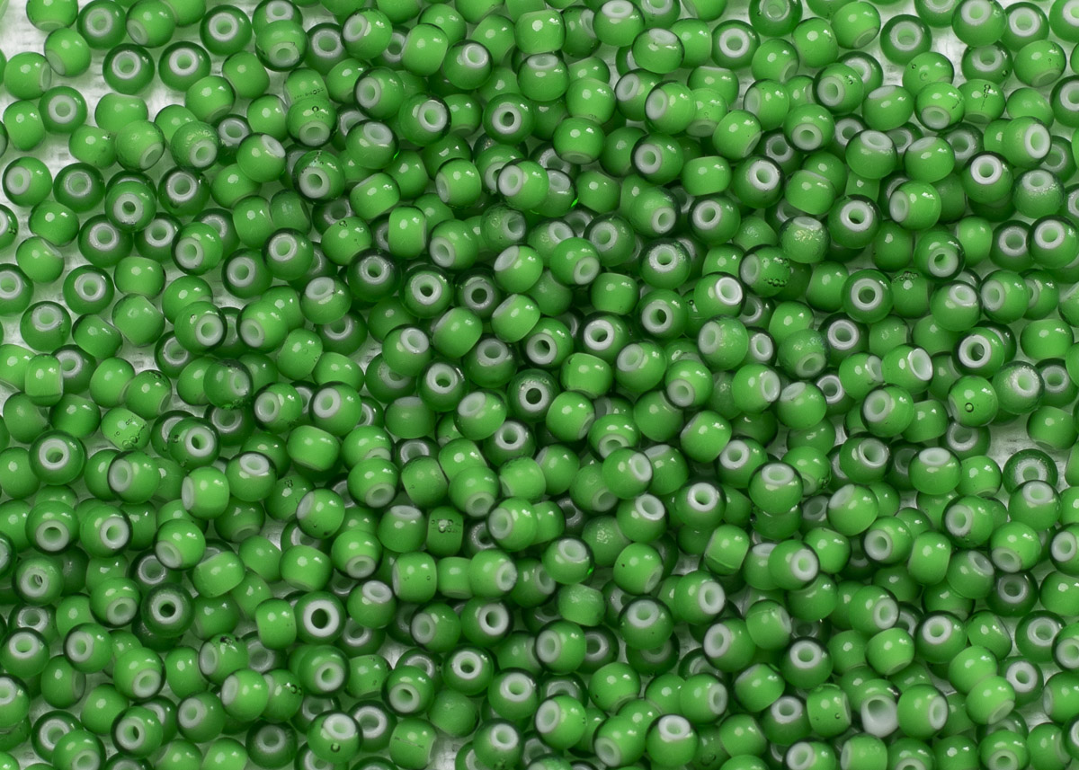 Бисер Чехия круглый 10/0 500г 53712 зеленый с белой серединой