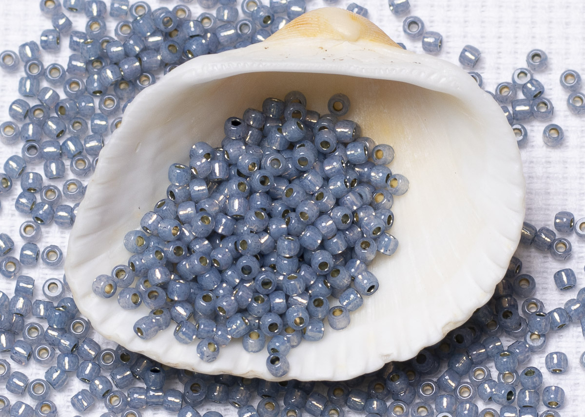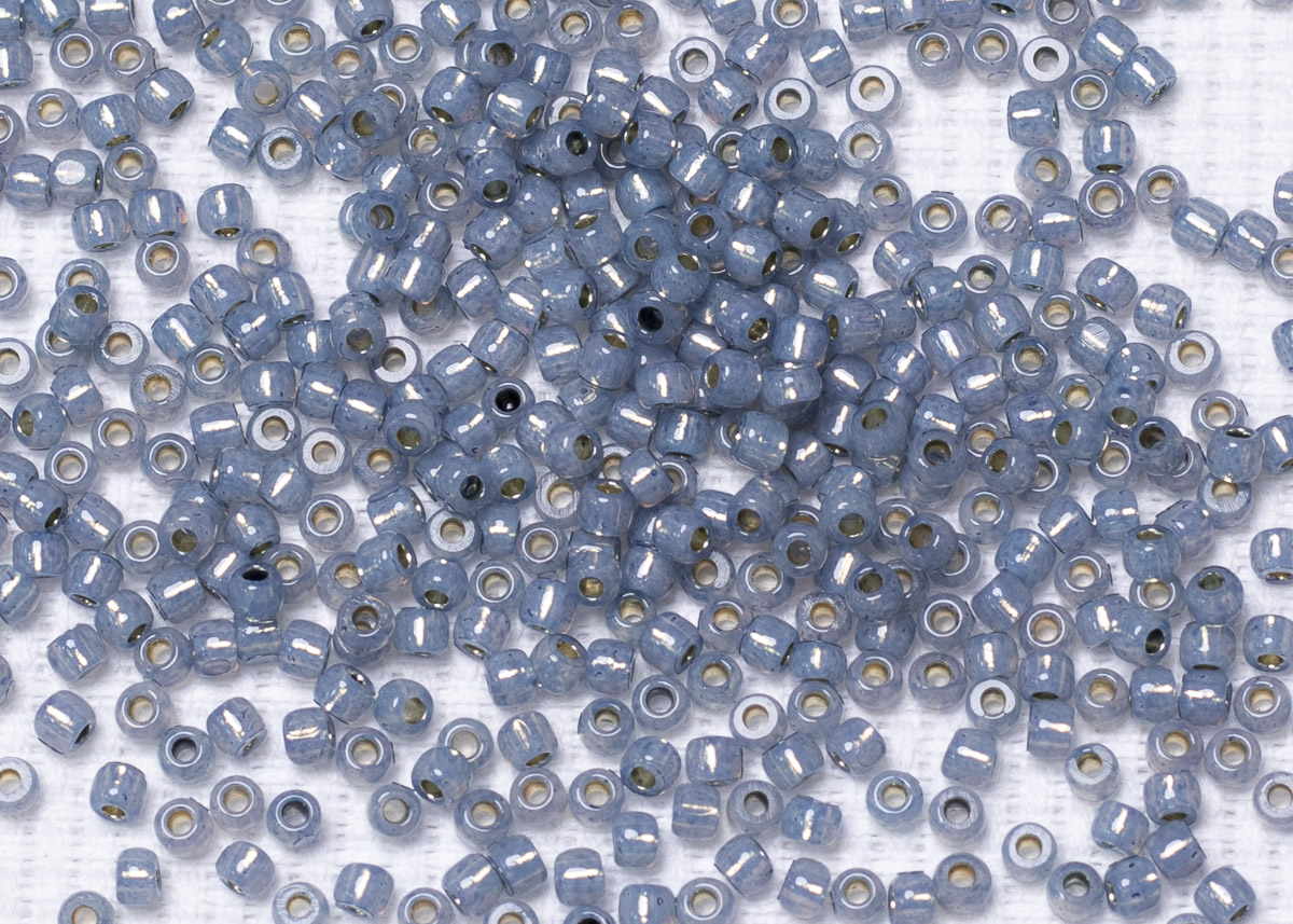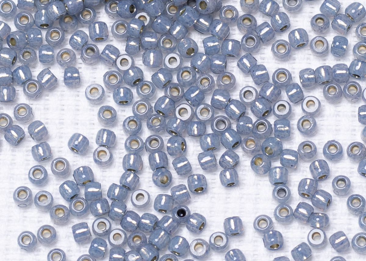 Бисер Япония круглый 11/0 10 г PF2102 молочный монтана, серебряная линия внутри