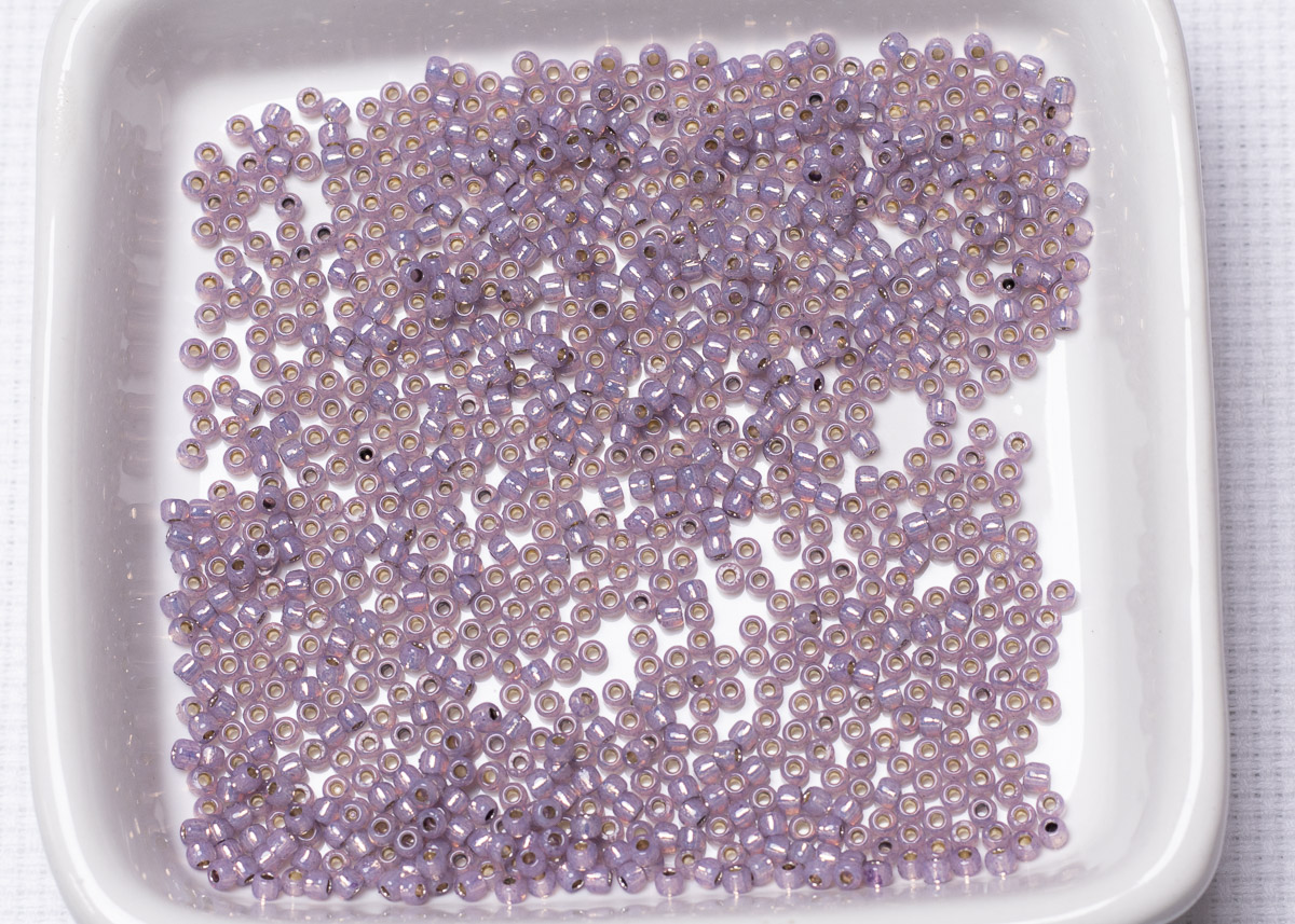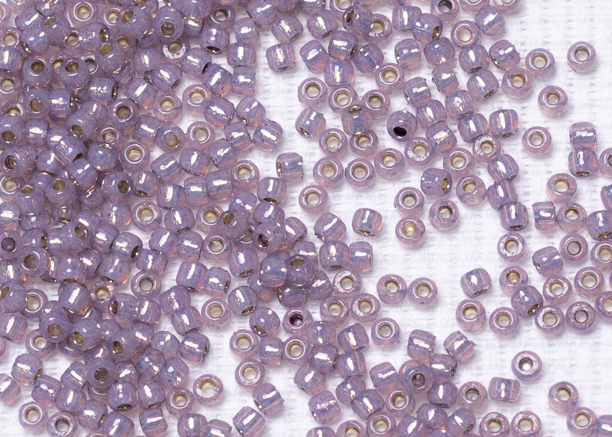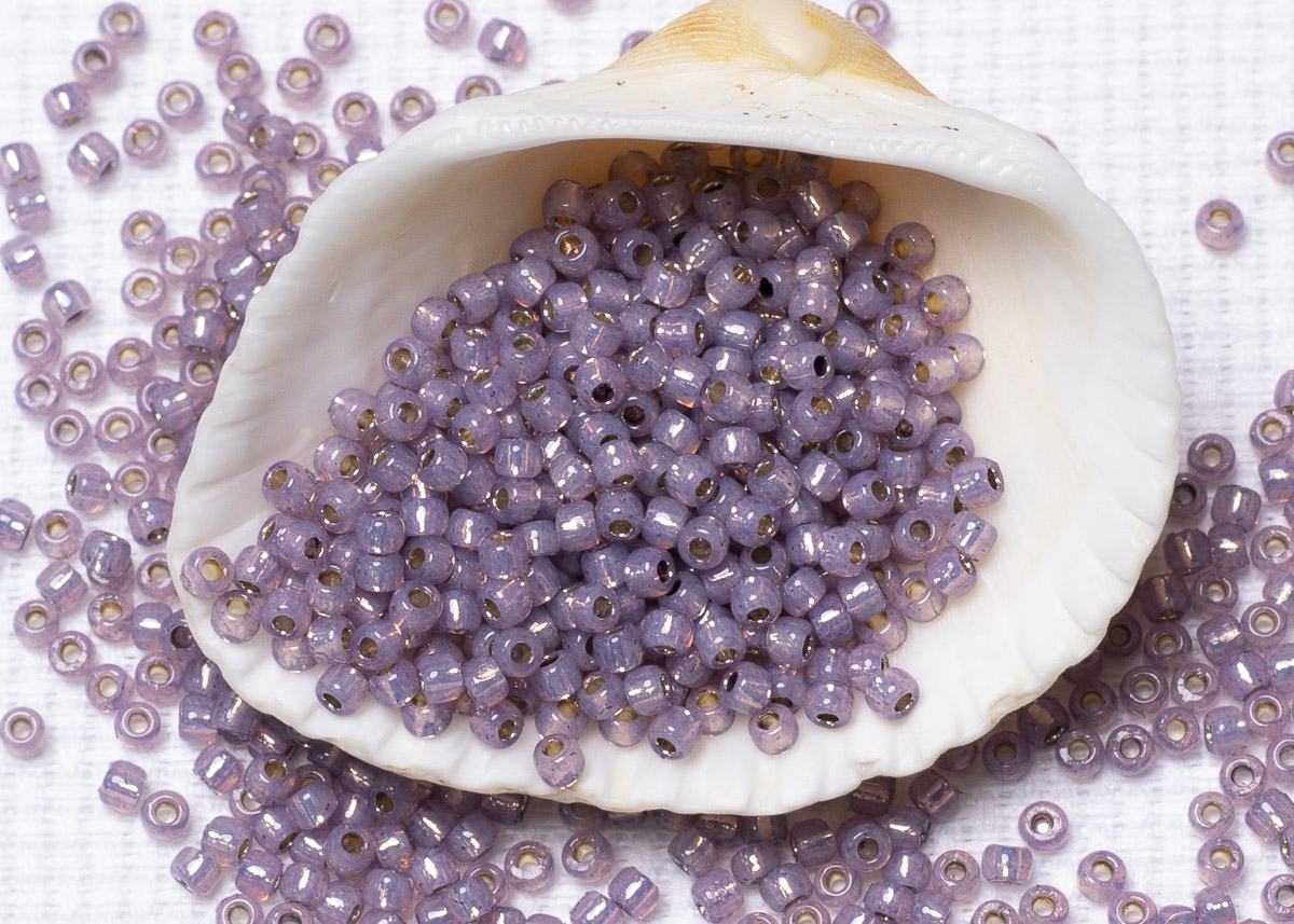 Бисер Япония круглый 11/0 10 г PF2108 молочный аметист, серебряная линия внутри