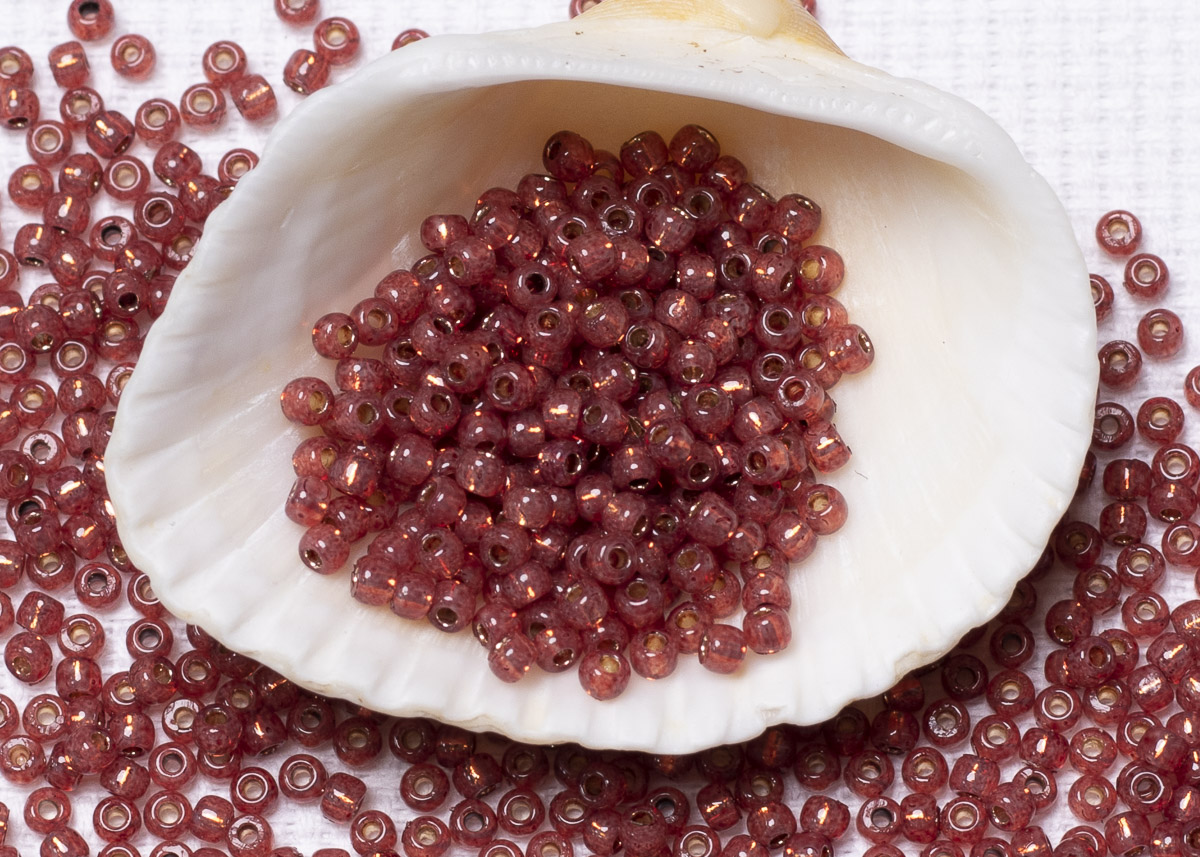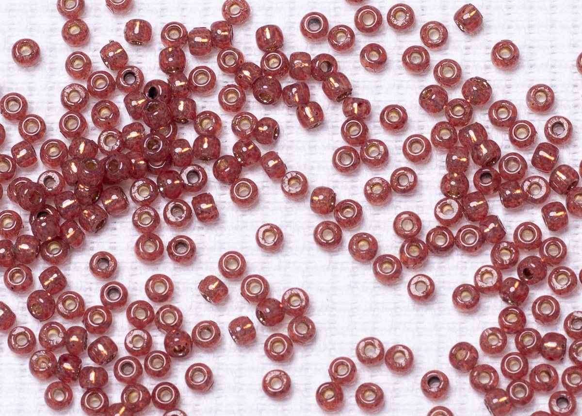 Бисер Япония круглый 11/0 10 г PF2113 молочный гранат, серебряная линия внутри