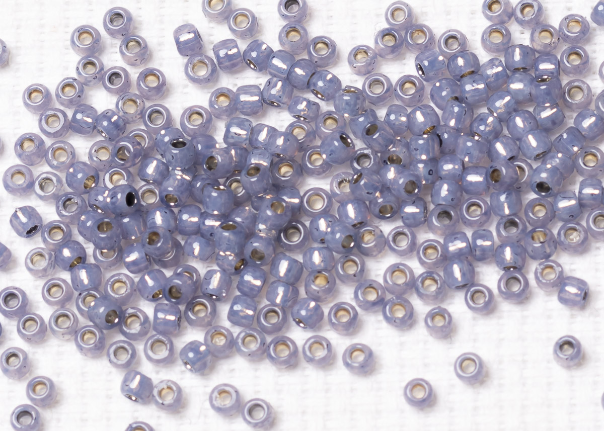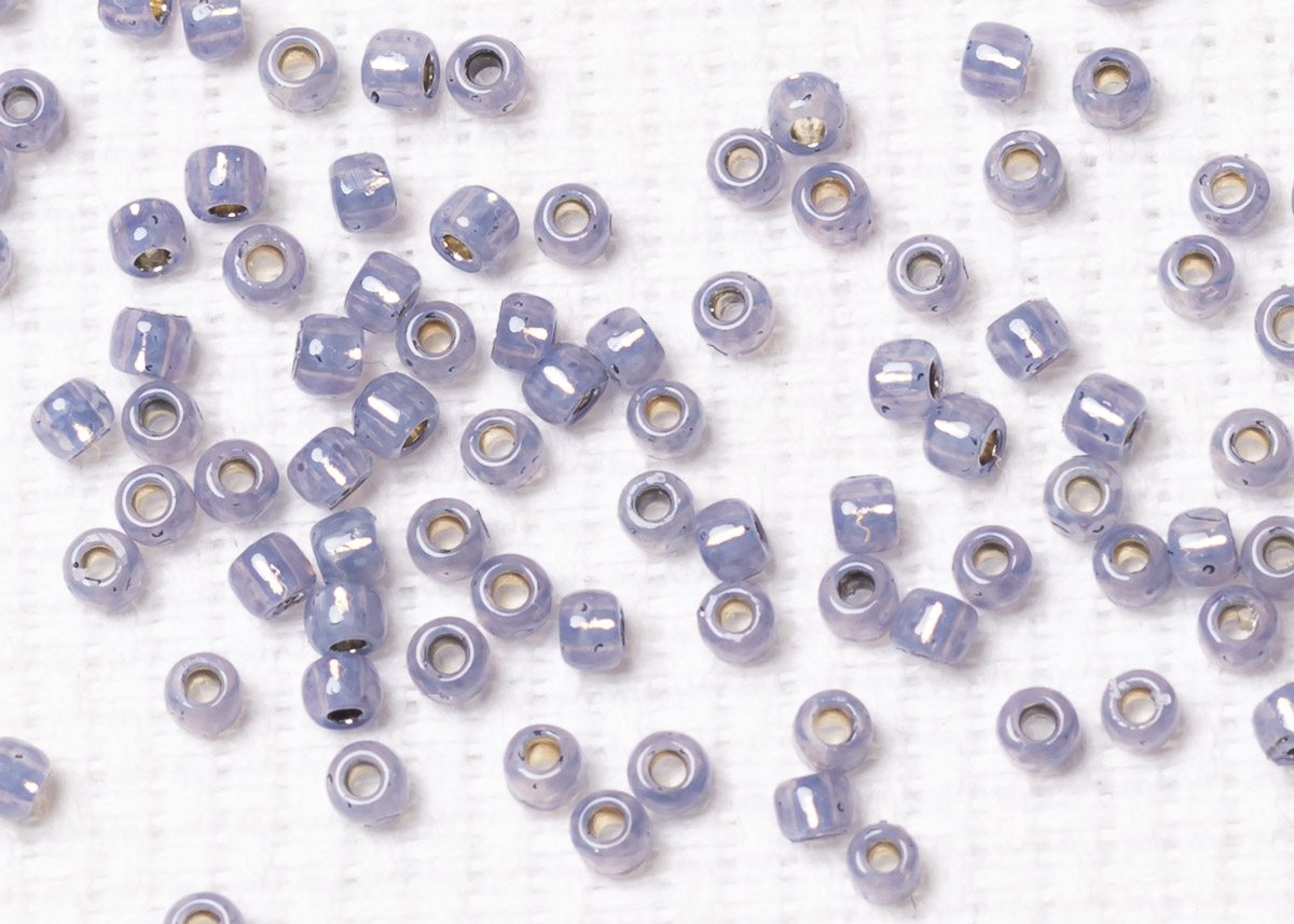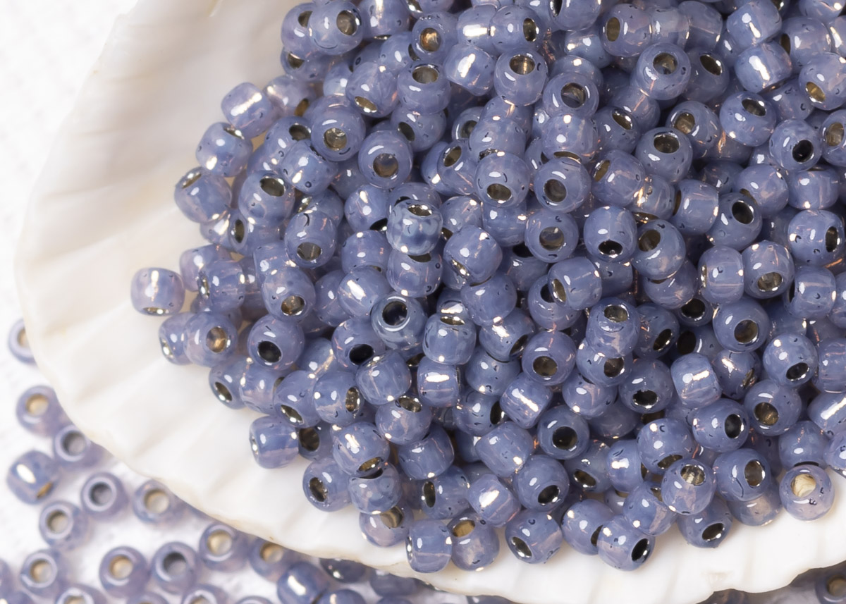 Бисер Япония круглый 11/0 10 г PF2124 молочный танзанит, серебряная линия внутри