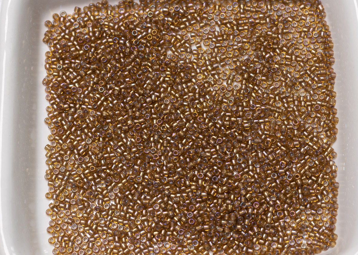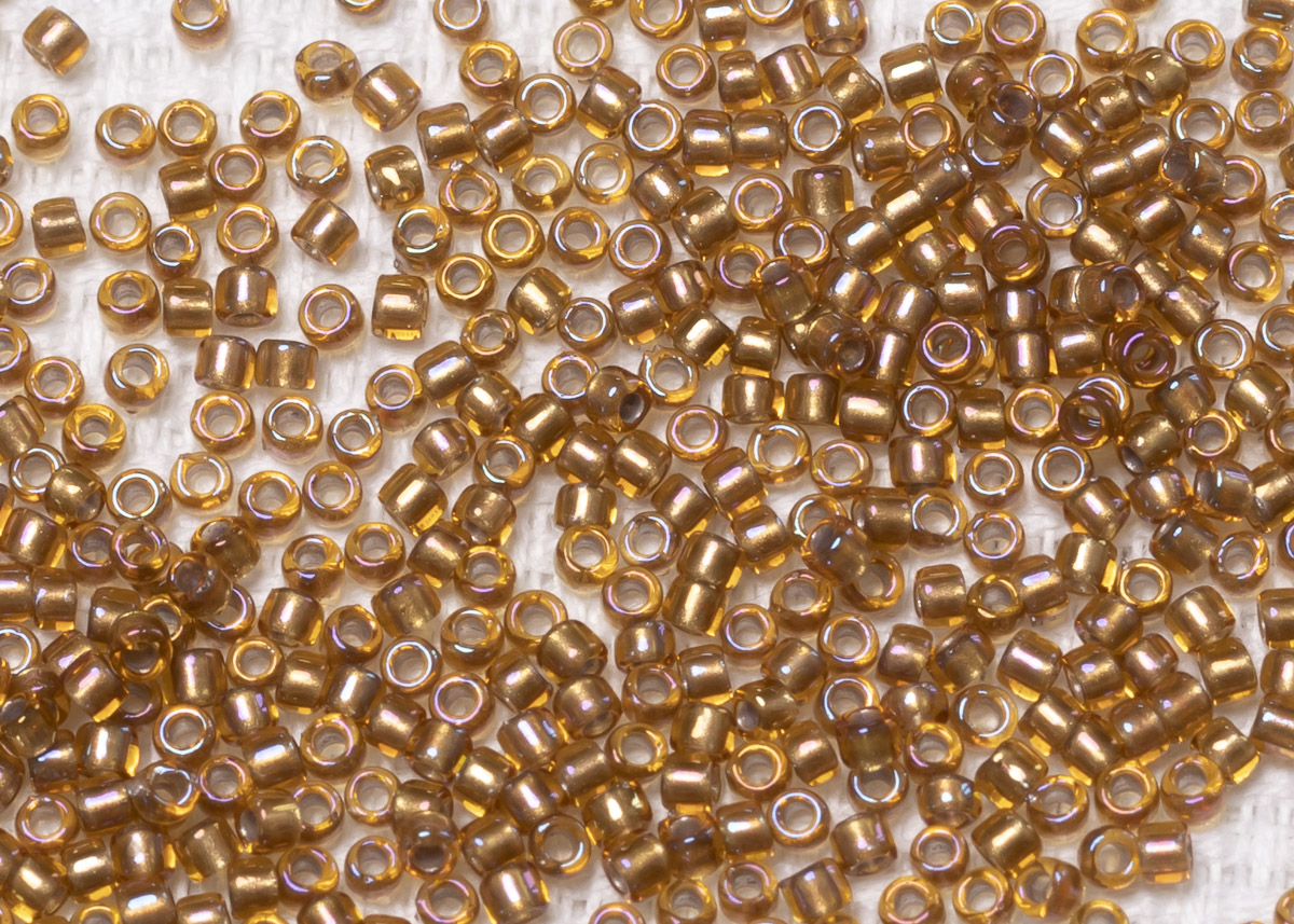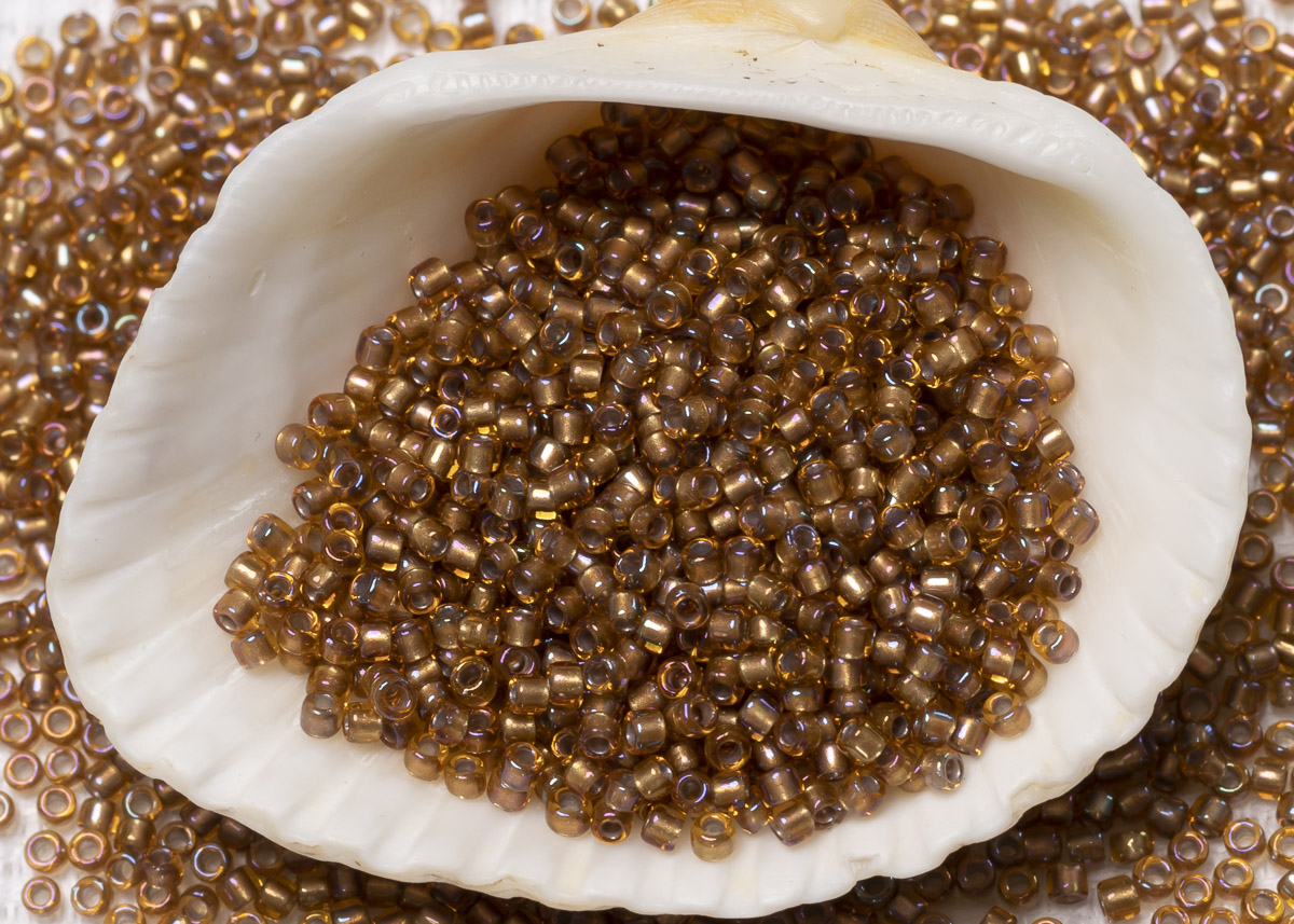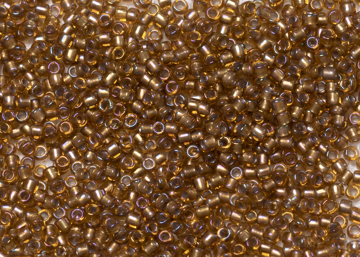 Бисер Япония круглый 11/0 10г 0278 топаз, золотая линия внутри