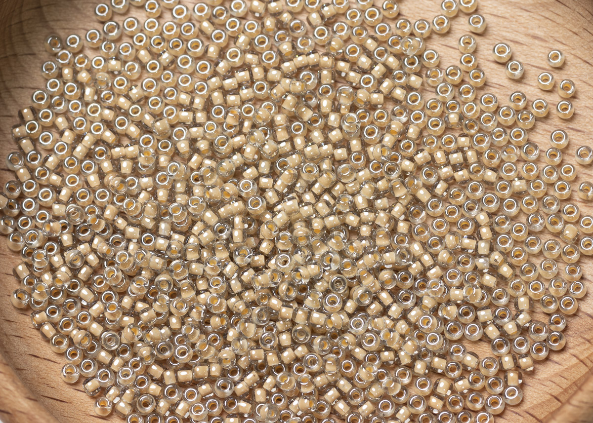 Бисер Япония круглый 11/0 10г 0369 черный алмаз/апельсиновый крем, окрашенный изнутри