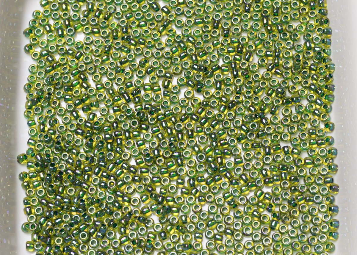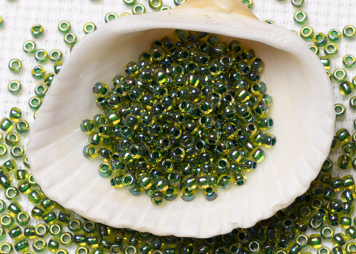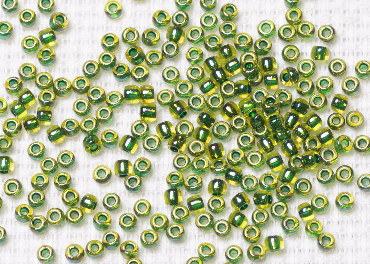 Бисер Япония круглый 11/0 10г 1829 нарцисс/зелёный лес радужный, окрашенный изнутри