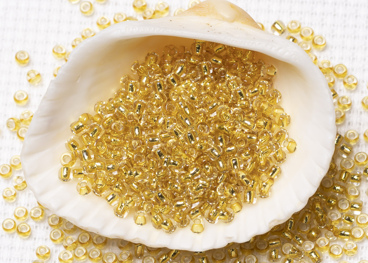 Бисер Япония круглый 11/0 10г 2151S шампань, серебряная линия внутри