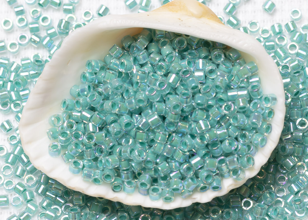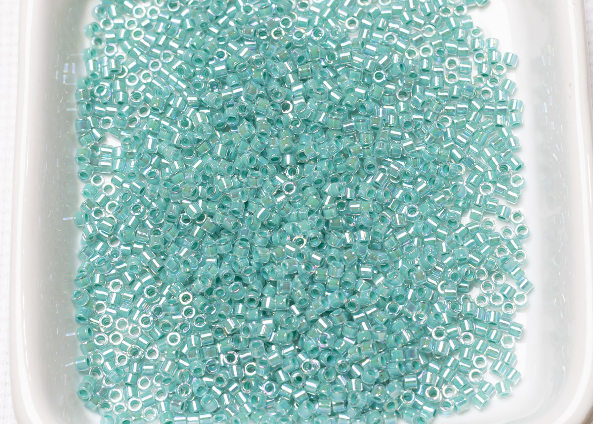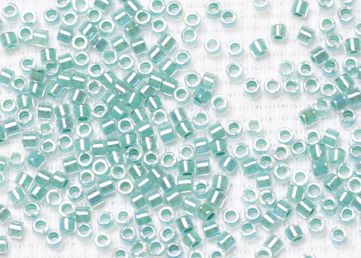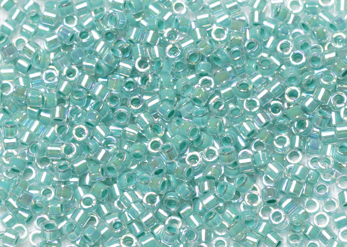 Бисер Япония MIYUKI Delica цилиндр 10/0 5 г DBM-0079 аква блю с цветной линией радужный
