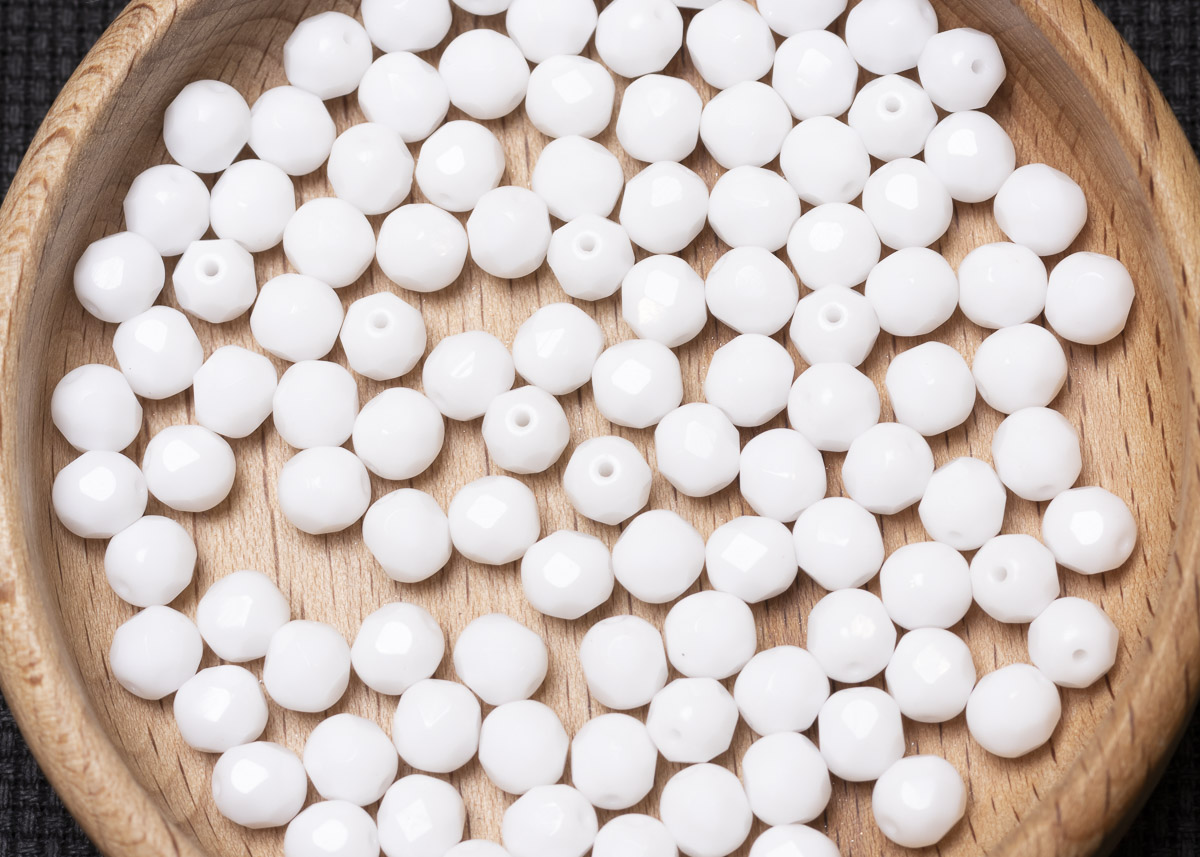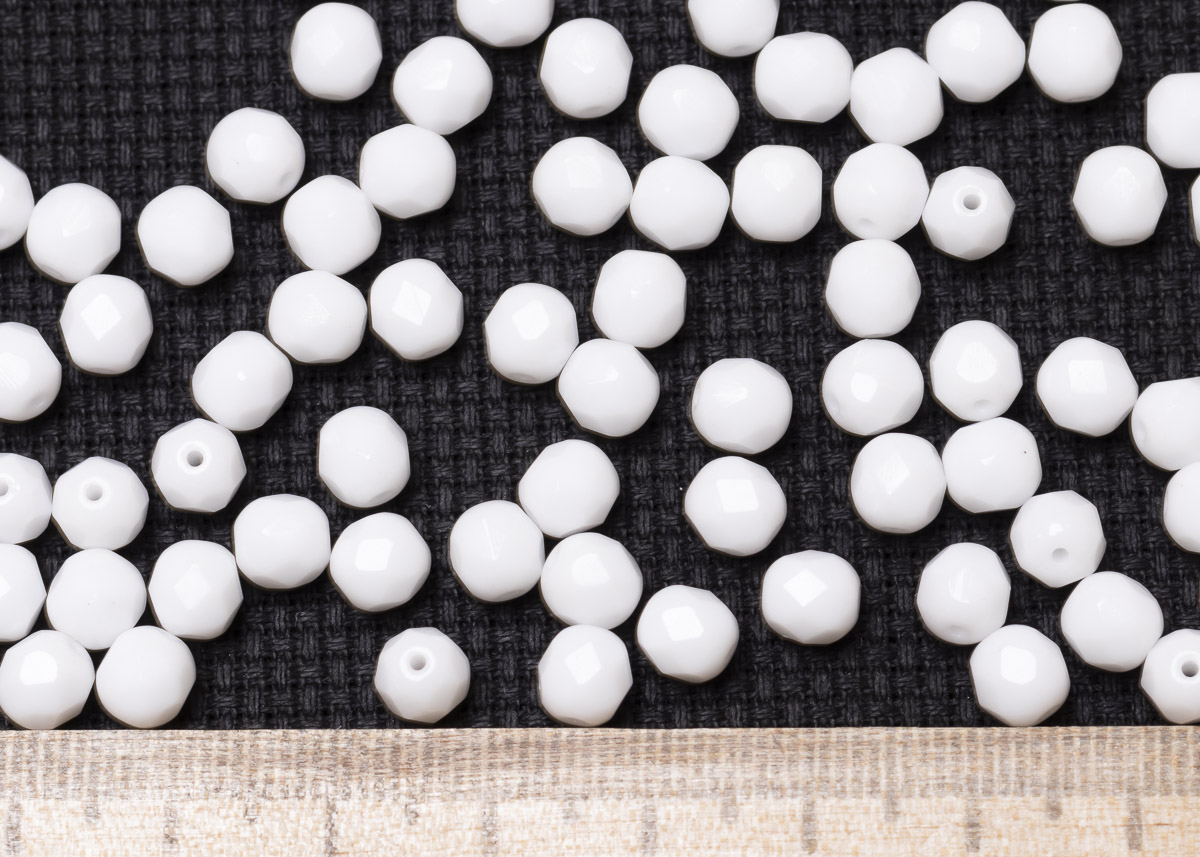 Бусины полированные круглые 6мм 25г (90 штук) 03000 белый непрозрачный