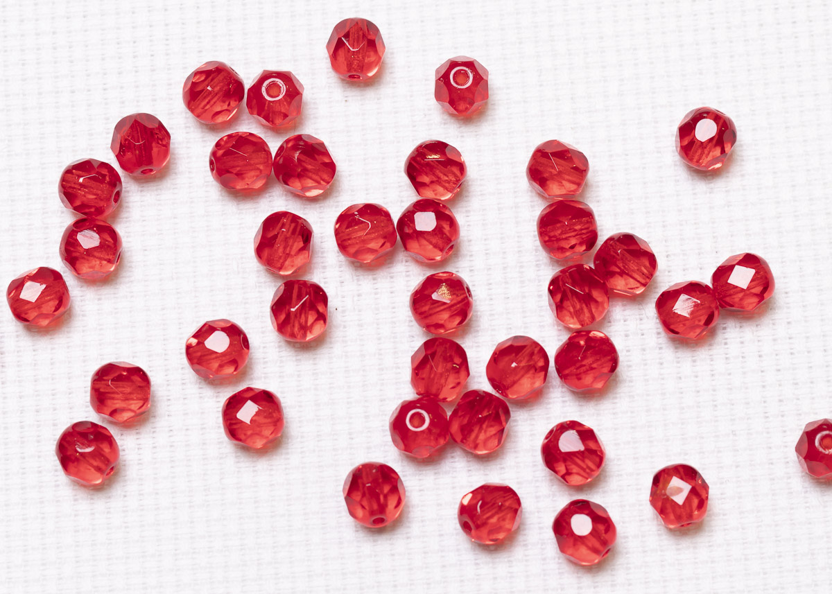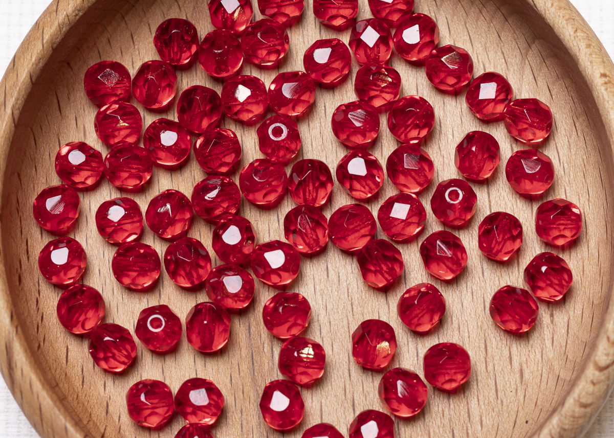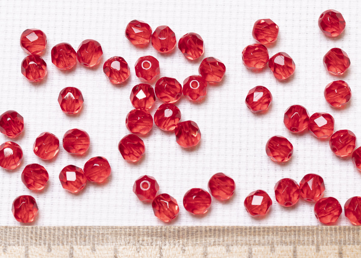 Бусины полированные круглые 6мм 25г (90 штук) 90080 красный прозрачный