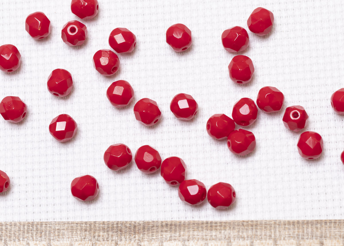 Бусины полированные круглые 6мм 25г (90 штук) 93200 красный непрозрачный