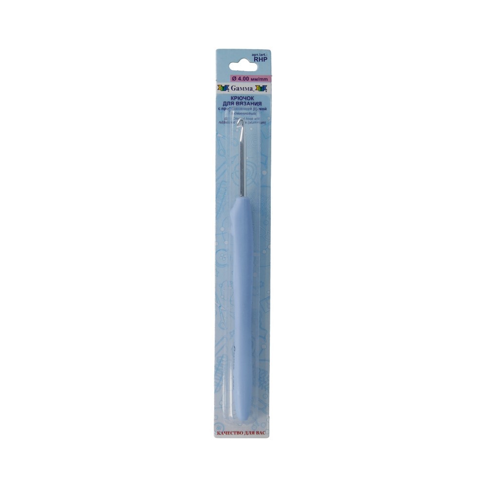 Для вязания " Gamma" RHP крючок с прорезин. ручкой алюминий d 4. 0 мм 16 см в блистере .
