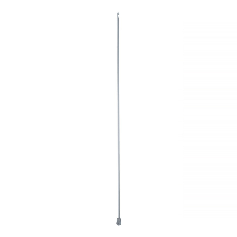 Длинный металлический крючок, с покрытием, с ограничителем на конце. Вязанное полотно имеет четкий узор, почти не растягивается и не деформируется после стирки. Вязание тунисским крючком производится только по одной лицевой стороне и этим отличается от вязки обыкновенным крючком. Тунисский крючок так же используется для многоцветного вязания с отделкой в виде узоров с геометрическими и растительными орнаментами. В этом случае можно воспользоваться схемами для вышивания крестом.