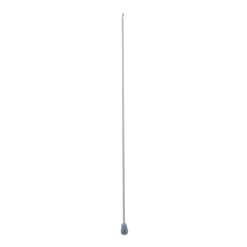 Длинный металлический крючок, с покрытием, с ограничителем на конце. Вязанное полотно имеет четкий узор, почти не растягивается и не деформируется после стирки. Вязание тунисским крючком производится только по одной лицевой стороне и этим отличается от вязки обыкновенным крючком. Тунисский крючок так же используется для многоцветного вязания с отделкой в виде узоров с геометрическими и растительными орнаментами. В этом случае можно воспользоваться схемами для вышивания крестом.