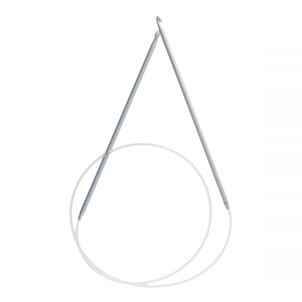 Крючки для вязания циркулярные металлические с покрытием - это два крючка соединенных между собой леской, длина 80 см. Используются в технике тунисского вязания. Циркулярными крючками вяжут поочередно, удобно вязать: - по кругу, - разными цветными нитями, - вещи больших размеров.