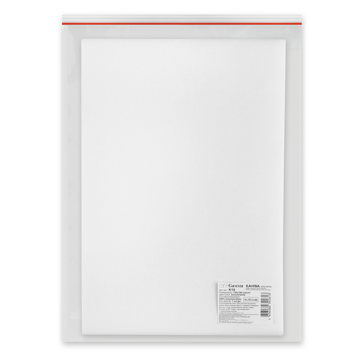 Канва K18 " Gamma" Aida №18 100% хлопок 150 x 100 см ± 2 см белый