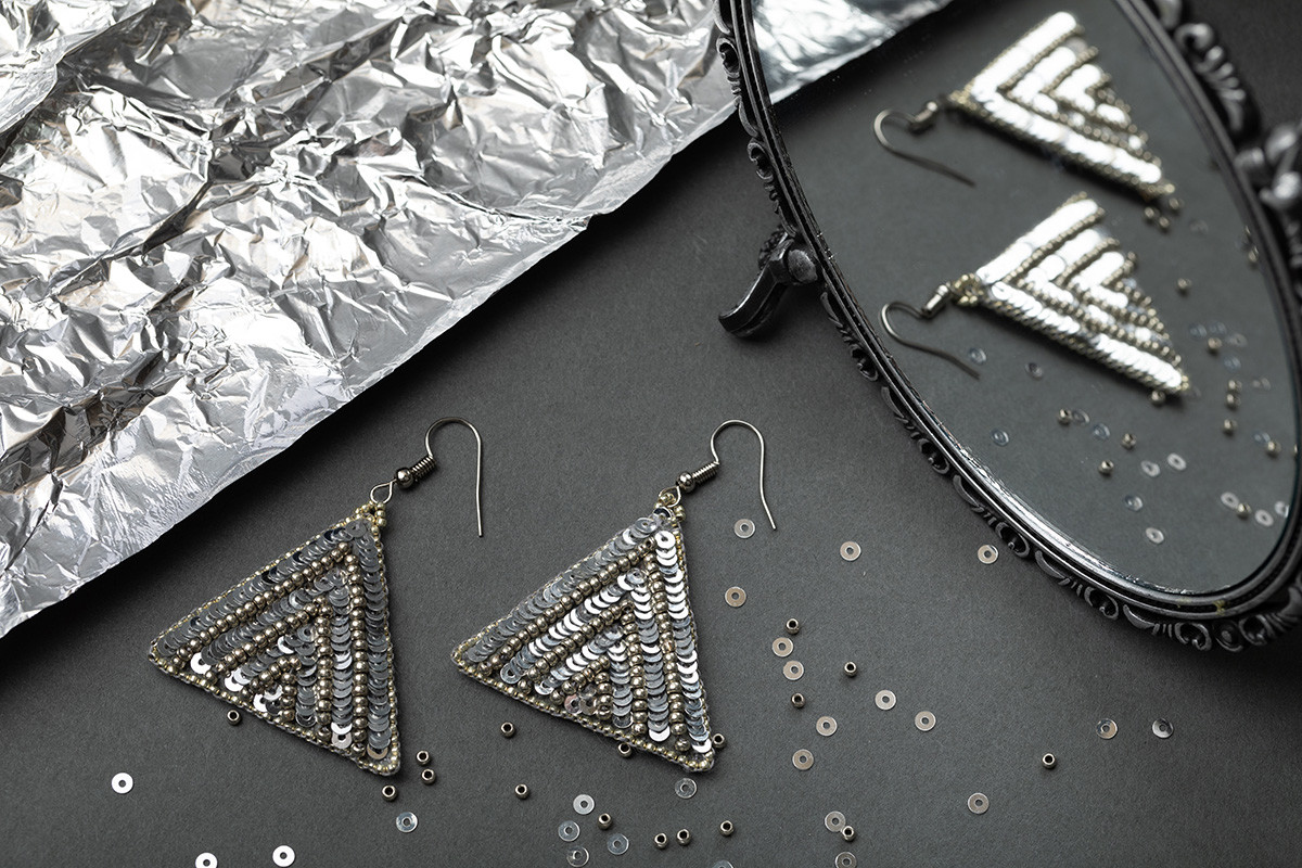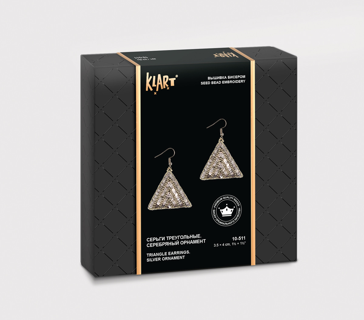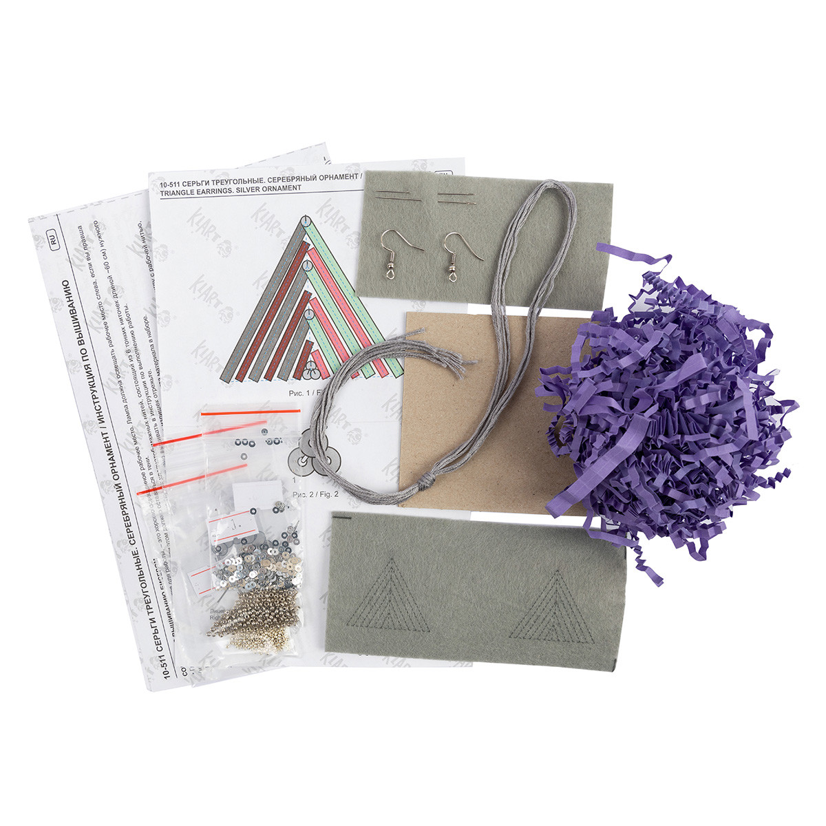 " Klart" набор для вышивания 10- 511 " Серьги треугольные. Серебряный орнамент" 4 х 3. 5 см