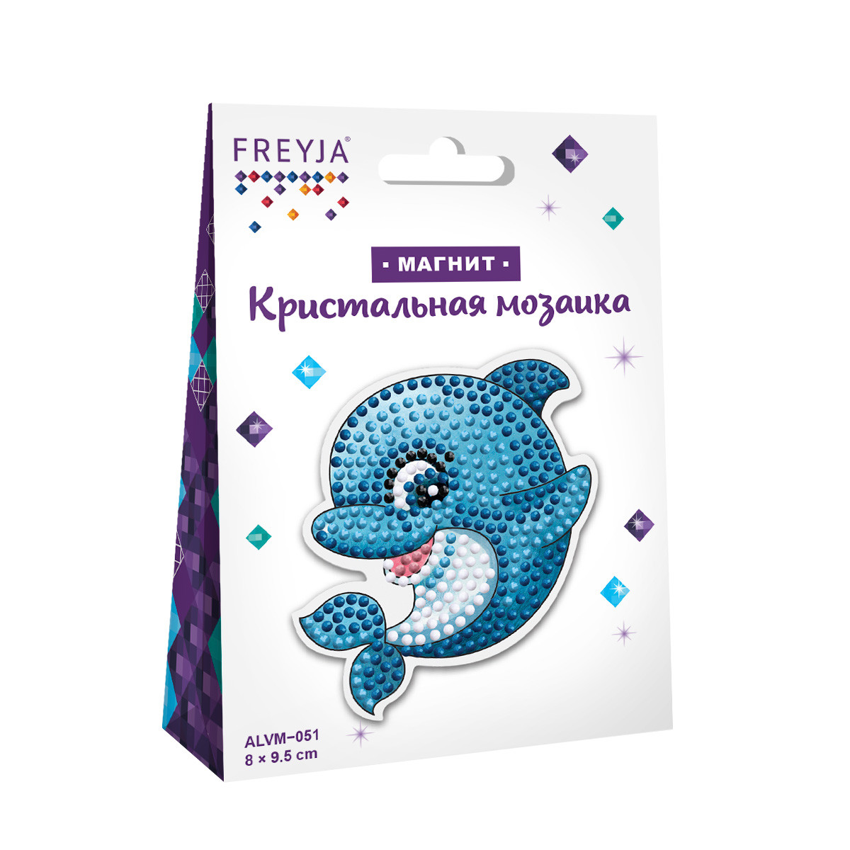 Кристальная ( алмазная) мозаика " ФРЕЯ" ALVM- 051 магнит " Дельфин" 8 х 9. 5 см