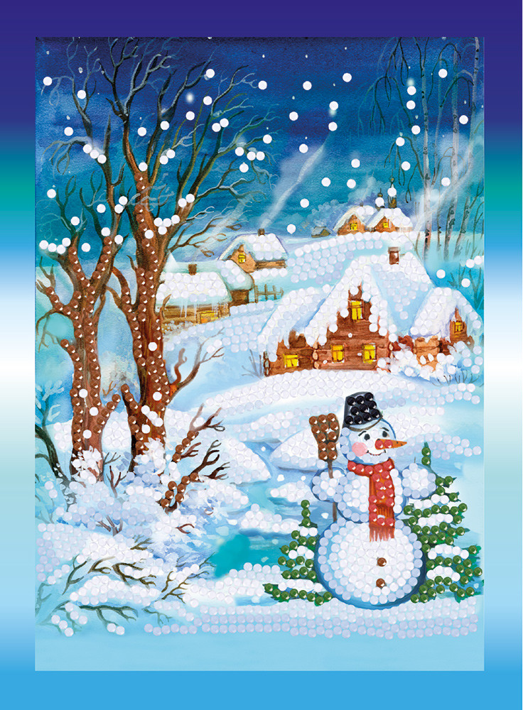 Кристальная ( алмазная) мозаика " ФРЕЯ" ALVS- 042 мини- картинка " Снежный вечер" 14 х 19. 5 см