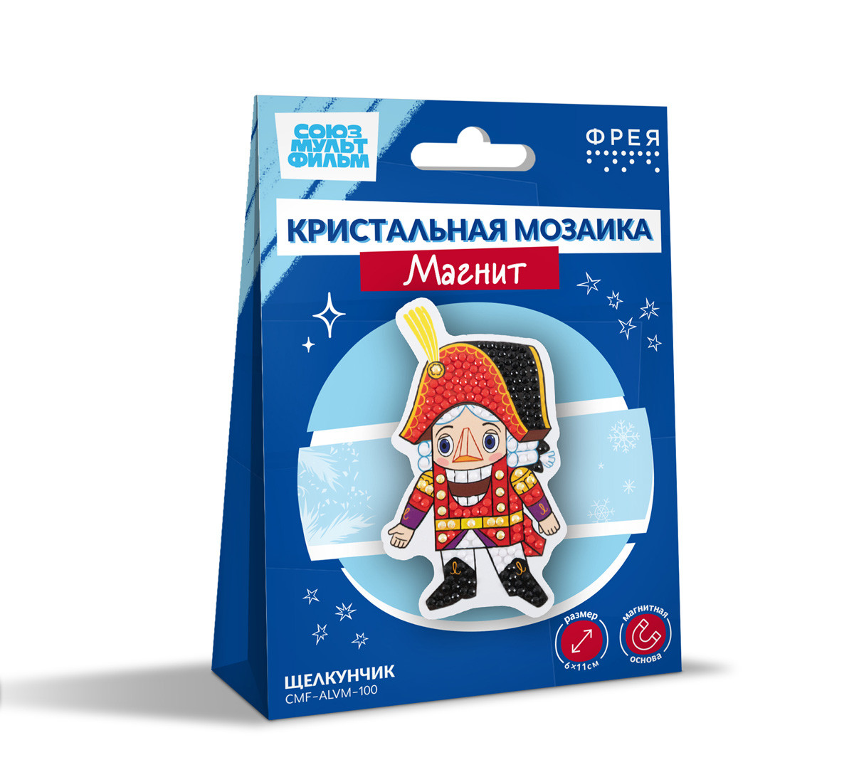 Добро пожаловать в мир волшебства и ностальгии с коллекцией наборов в технике " Кристальная мозаика", созданных по анимационным шедеврам студии " Союзмультфильм". Миллионы людей выросли на захватывающих приключениях любимых героев. Эти персонажи стали частью вашего детства, а теперь они могут украсить вашу повседневную жизнь. Набор, сертифицированный для детского творчества, для создания яркого магнита. Рекомендованный возраст: 7+. Выполнение работы не требует специальных навыков, выкладывать изображение очень просто и легко. Стразы наклеиваются поверх изображения со схемой на уже нанесенный клеевой слой. Набор ТМ ФРЕЯ комплектуется всеми необходимыми материалами: - магнитная основа с клеевым слоем и защитной плёнкой, - круглые стразы: 4 цвета, с запасом более 30%,- картонный лоток, - стилус и восковая подушечка,- инструкция. Тип выкладки: частичнаяУровень сложности: 1 из 3Размер готового изделия: 6 х 11 смРазмер упаковки: 10. 5х2. 5х14. 5 см. Продукция соответствует требованиям ТР ТС " О безопасности игрушек". Сообщить о неточности в описании