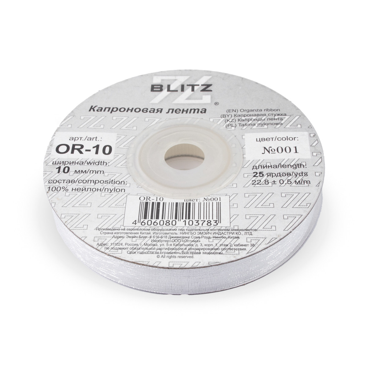 Лента капроновая OR-10 №001 белый