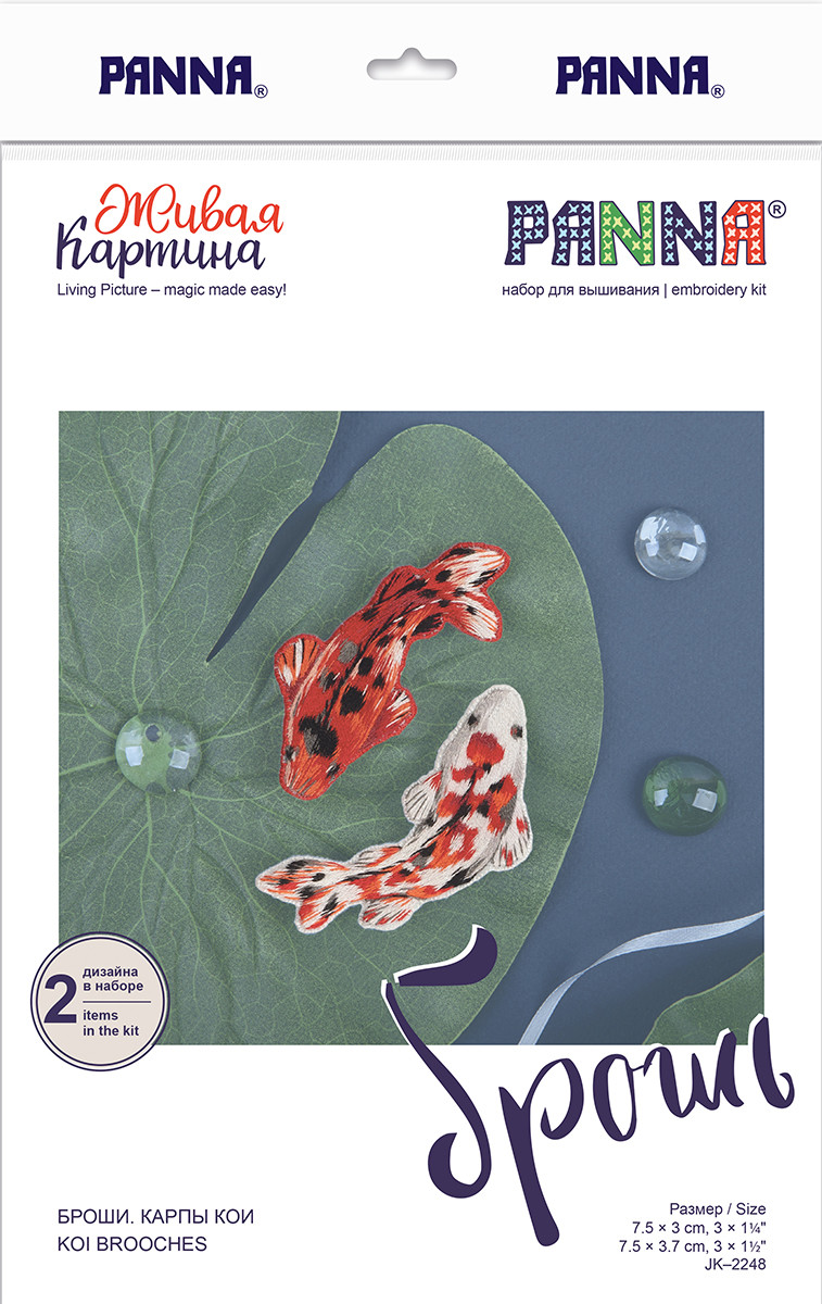 Набор для вышивания " PANNA" " Живая картина" JK- 2248 " Броши. Карпы кои" 3. 7 х 7. 5 см