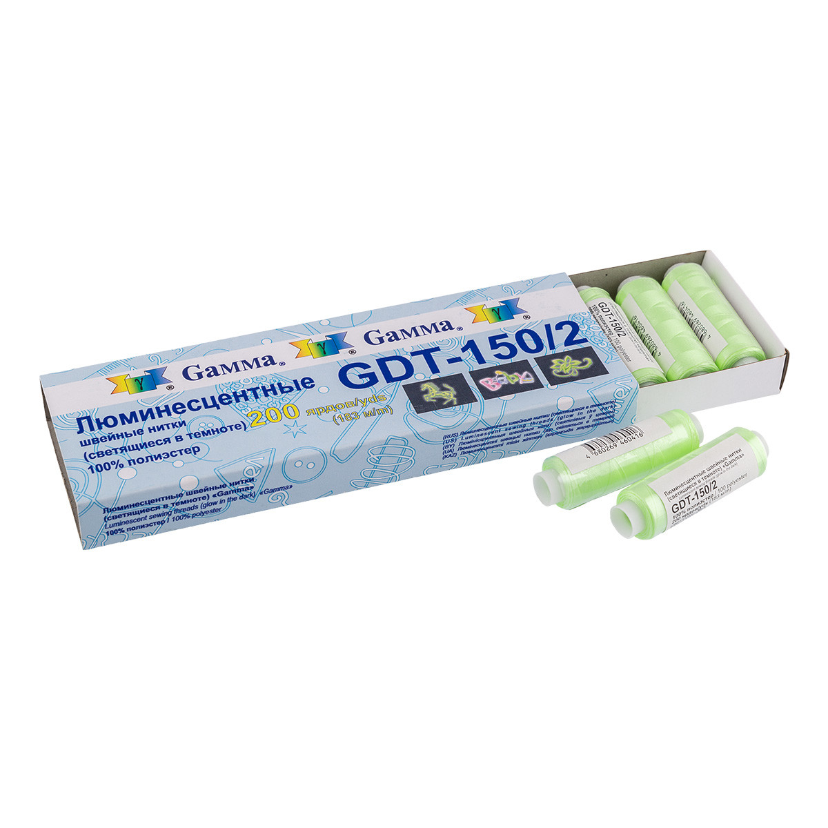 Нитки для вышивания " Gamma" Люминесцентные нитки ( светящиеся в темноте) GDT- 150/ 2 100% полиэстер 200 я 183 м №2 гр. белый