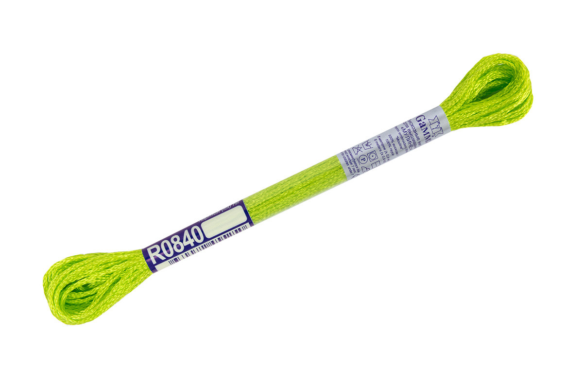 Нитки для вышивания " Gamma" мулине 100% вискоза 8 м R0840 яр. салатовый