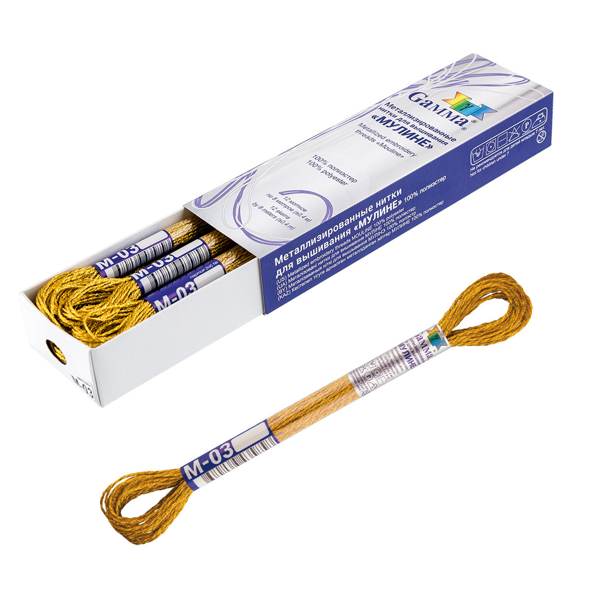 Нитки для вышивания " Gamma" мулине SM металлик 100% полиэстер 8 м М- 01 серебро