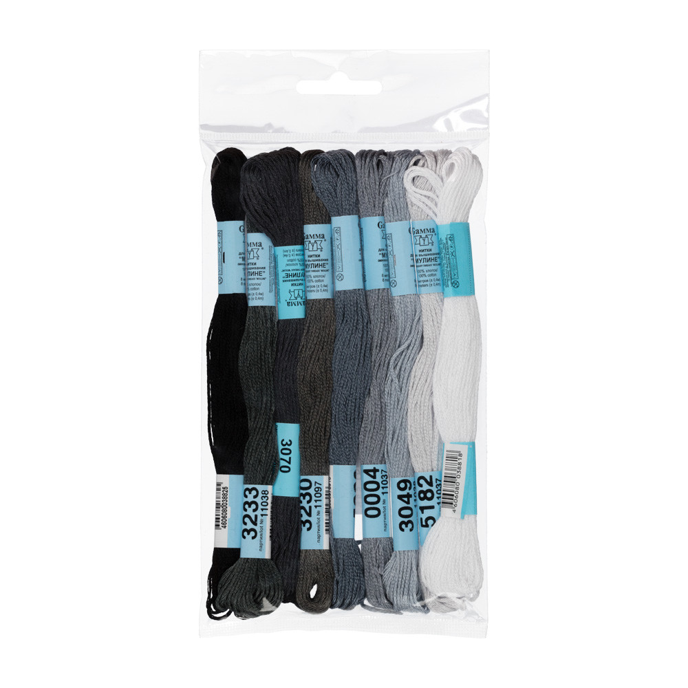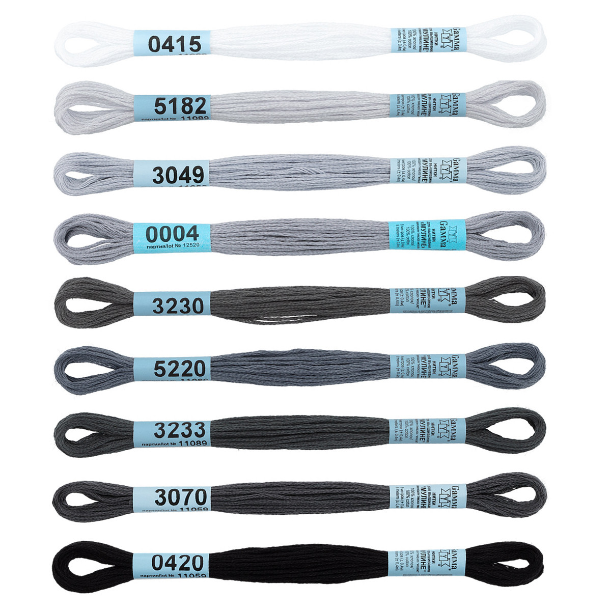 Нитки для вышивания Gamma набор мулине № 10 100% хлопок 9 цв. x 8 м Серый