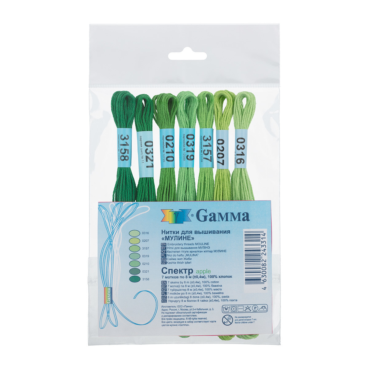 Нитки для вышивания Gamma набор мулине " СПЕКТР" 100% хлопок 7 x 8 м apple
