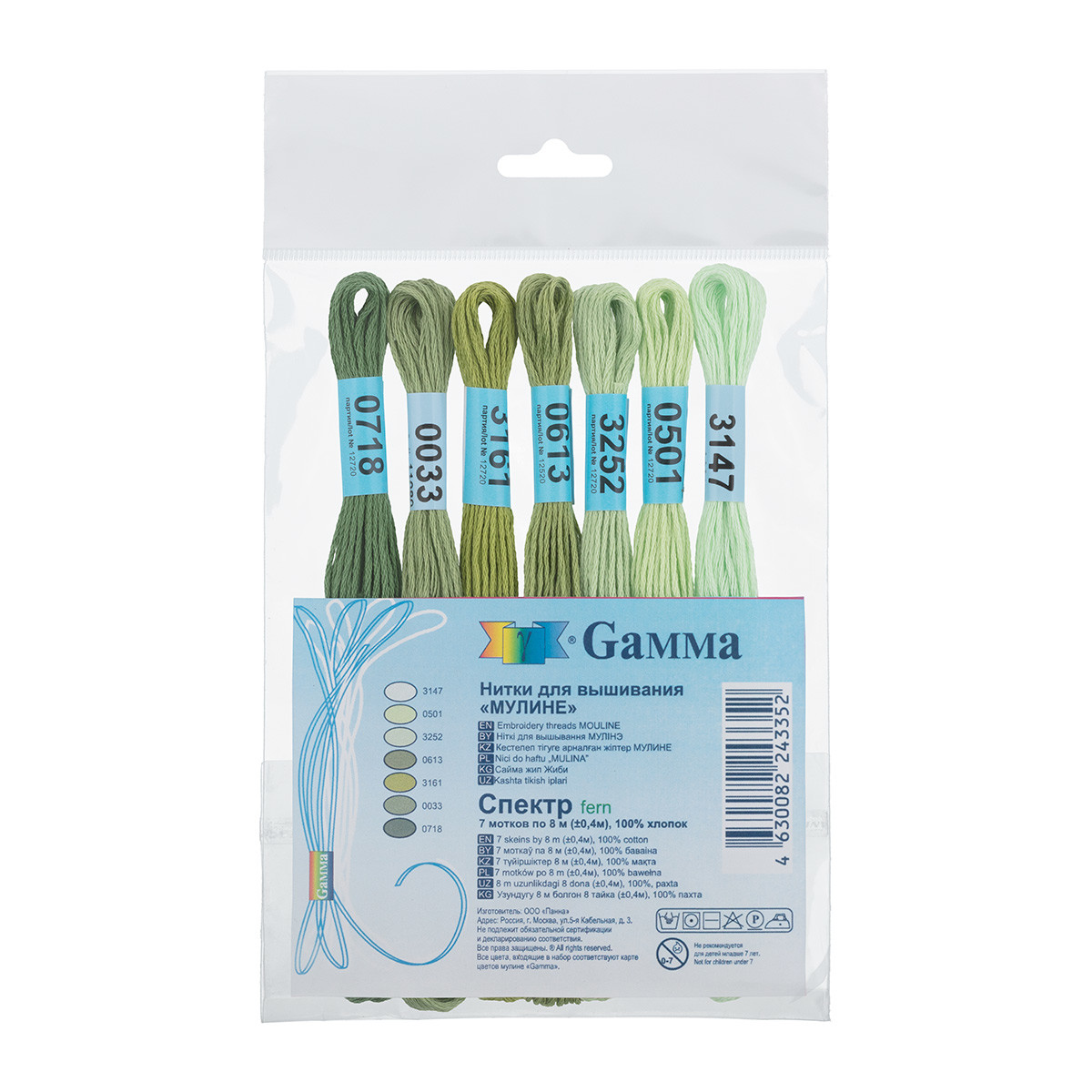 Нитки для вышивания Gamma набор мулине " СПЕКТР" 100% хлопок 7 x 8 м fern