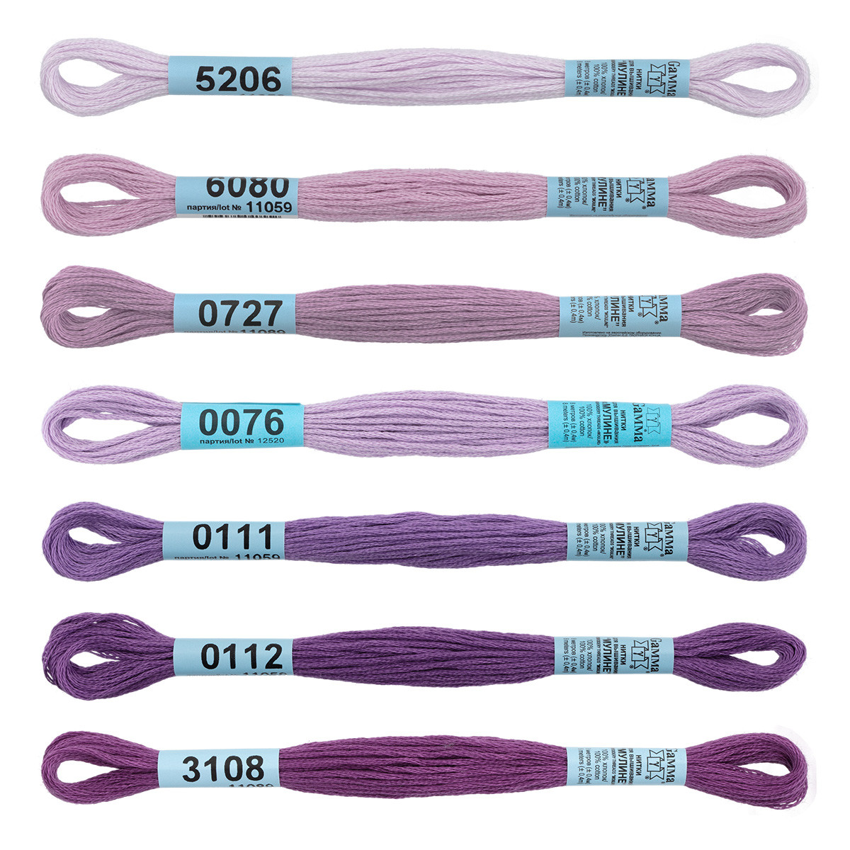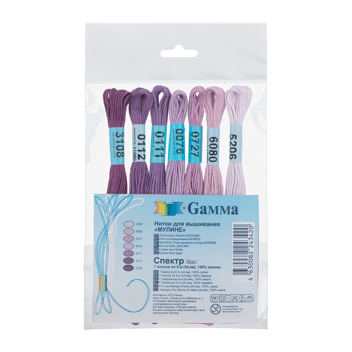 Нитки для вышивания Gamma набор мулине " СПЕКТР" 100% хлопок 7 x 8 м lilac
