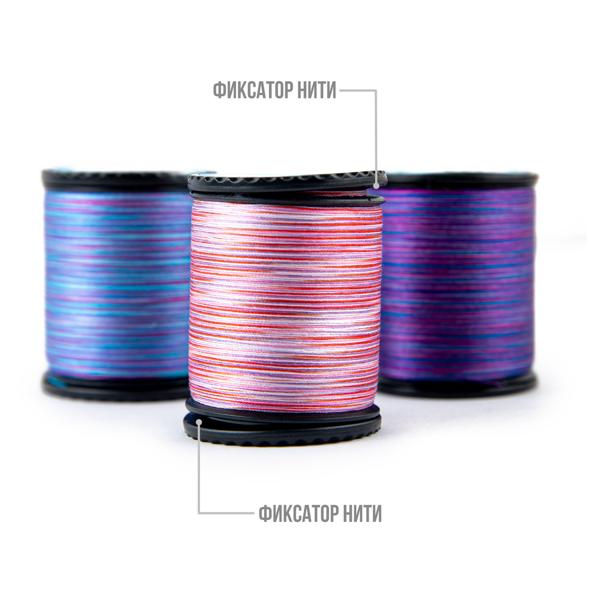 Уникальные шелковые нитки окрашены короткими секциями - цвет меняется каждые 2- 3 см. Благодаря этому даже простая прямая строчка выглядит оригинально и эффектно. Мягкие и прочные, эти нитки используются для стежки, машинной и ручной вышивки, создания декоративных швов и строчек, люневильской техники вышивания. Представлены нитки 3- х видов окрашивания: оттенки в пределах одного цвета; светлые разноцветные; насыщенные разноцветные. Толщина нити- 21, 5Текс. Прочность- 9, 3 Н. Растяжение- 20%. Правая крутка. Рекомендуем использовать в работе иглы " Gamma" для швейных машин: NU №75, NU №80, NU №85, NU №90