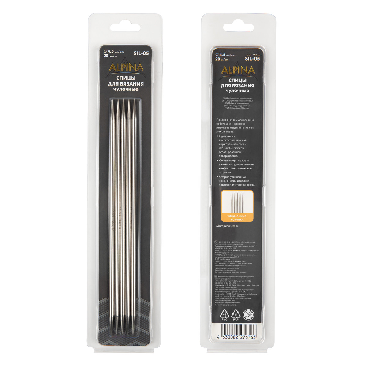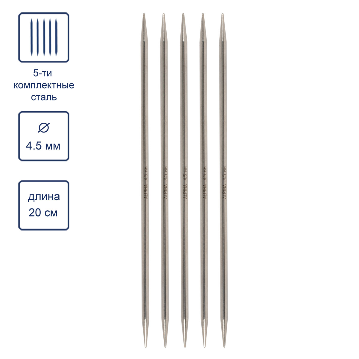 Спицы Alpina чулочные 5- ти компл. SIL- 05 сталь d 4. 5 мм 20 см .
