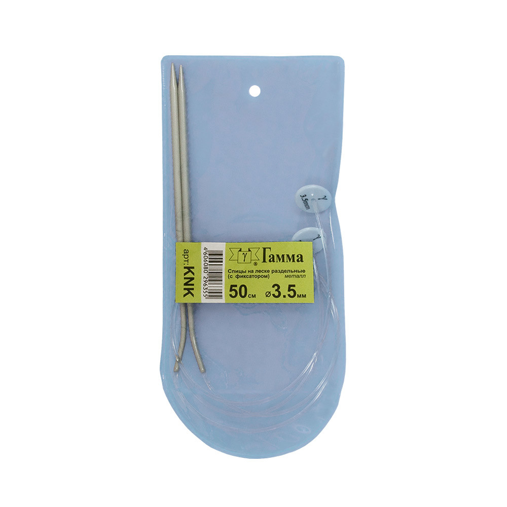 Аналог прямых спиц. Гибкость лески позволяет распределить вес изделия при вязании. Облегчает вязание больших, тяжелых вещей идеально подходят для вязания воротников. Металлические спицы «GAMMA» имеют покрытие, благодаря, которому петли хорошо скользят по поверхности спиц. Спицы прочные, легкие, гладкие, удобные в использовании. Кончики спиц закругленные, гладкие и ровные. Спицы KNK предназначены на вывязывания широких деталей изделия / спинки, переда, рукавов/.