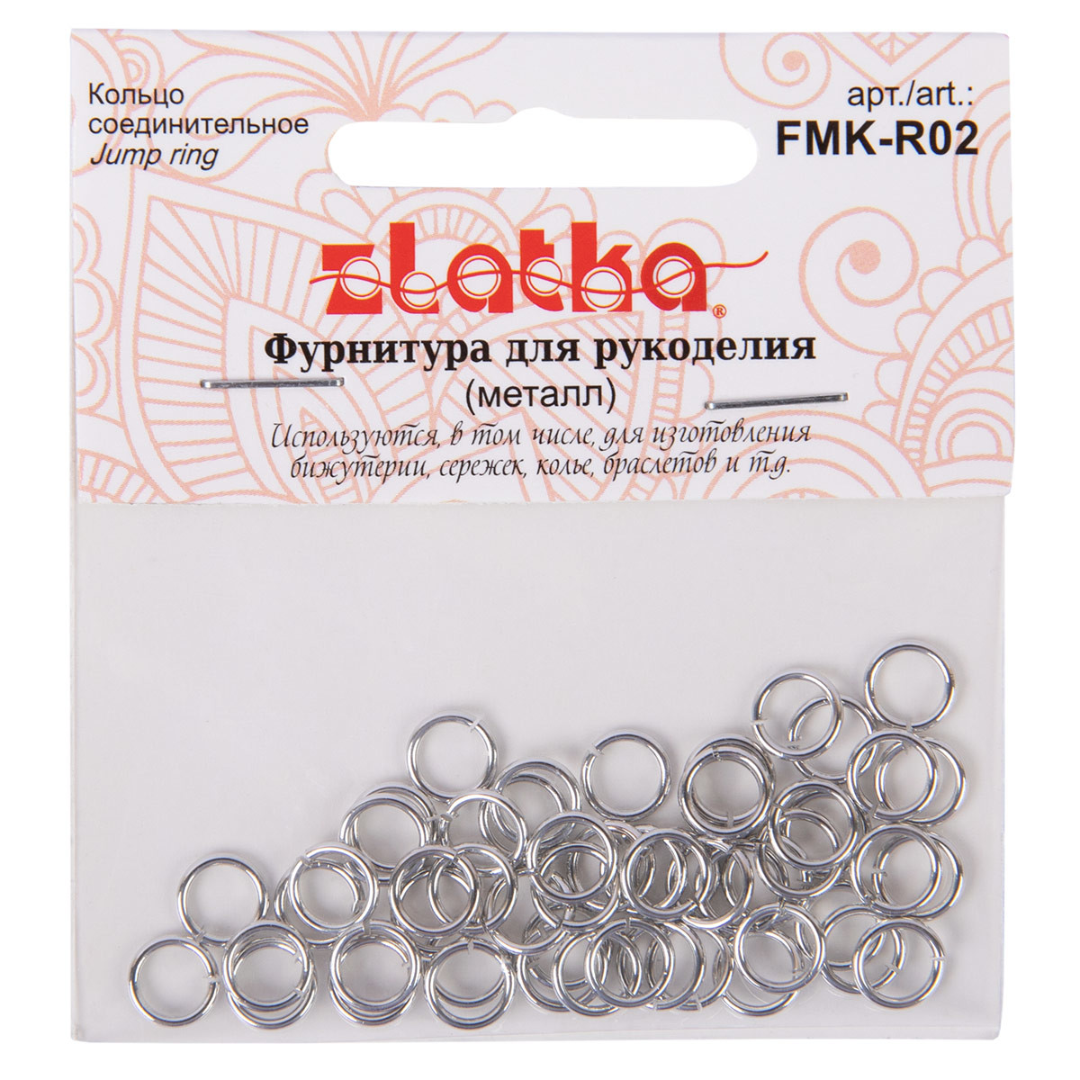 Кольцо соединительное " Zlatka" FMK- R02 используются для соединения различных элементов украшения между собой. Позволяют прикрепить застежку к концевику, соединить держатель и подвеску, соединить два коннектора, прикрепить подвеску к основе для декорирования и т. д. Одинарные колечки более изящны и отлично подходят для легких и не подверженных большим нагрузкам украшений и элементов декора. Для тяжелых, подверженных постоянному трению и детских украшений рекомендуется использовать двойные колечки арт. R- 03, R- 06, FMK- R04, 05. Использование качественной фурнитуры играет очень важную роль при изготовлении бижутерии. От правильного выбора подвески, коннектора, замка или любой другой связующей части зависит целостность готового изделия. Внутр. диаметр: 4ммТолщина: 0, 8 мм. Количество: 50шт. Состав: латунь. Не содержит никель и свинец. Сообщить о неточности в описании