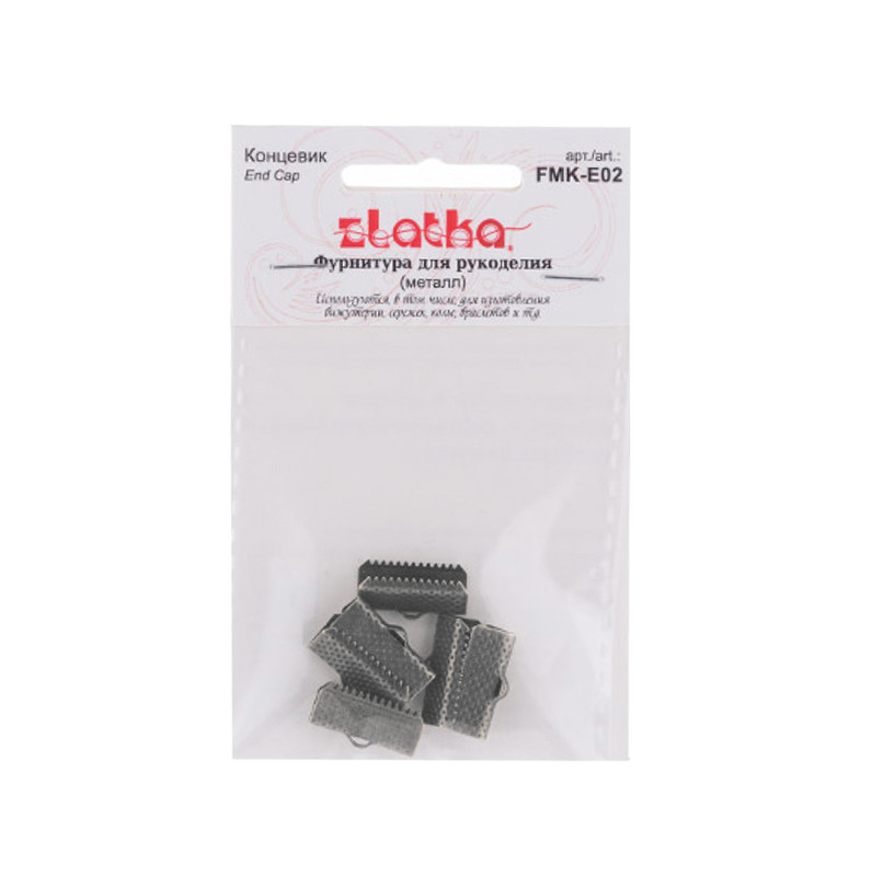 Концевик " Zlatka" FMK- E02 используются для профессионального аккуратного завершения бус, колье или браслетов. Они позволяют подготовить концы украшения к присоединению застежки. Обжимные концевики универсальны и удобны в использовании. Они зажимаются с помощью инструментов, а к петельке концевика присоединяется застежка напрямую или при помощи соединительного колечка. Тщательно зажимайте концевик, чтобы крепление получилось надежным. Использование качественной фурнитуры играет очень важную рольпри изготовлении бижутерии. От правильного выбора подвески, коннектора, замка или любой другой связующей части зависит целостность готового изделия. Длина: 16 мм, Ширина: 7 мм, Толщина: 2 мм, Отверстие 2 мм. Состав: 100% железо. Сообщить о неточности в описании