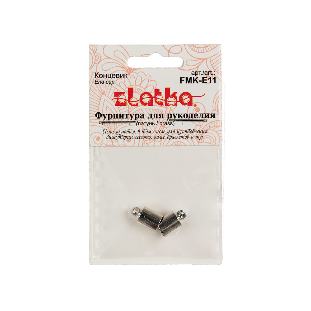 Концевик " Zlatka" FMK- E11 используются для профессионального аккуратного завершения бус, колье или браслетов. Они позволяют подготовить концы украшения к присоединению застежки. Клеевые чаще всего используются для толстых шнуров или бисерных жгутов. Фиксация происходит на супер- клей. Для тяжелых украшений рекомендуется использовать концевики- шапочки арт. FMK- E05, 06, 09. Размер: 6 х 10 мм Состав: латунь. Не содержит никель и свинецИспользование качественной фурнитуры играет очень важную роль при изготовлении бижутерии. От правильного выбора подвески, коннектора, замка или любой другой связующей части зависит целостность готового изделия. Сообщить о неточности в описании