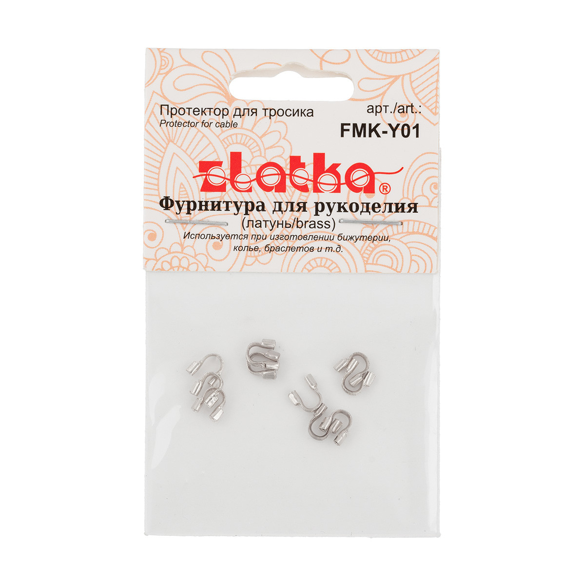 Протектор для тросика FMK- Y01 4. 5 х 4 мм - элемент вспомогательной фурнитуры. Предохраняет тросик, леску от заломов и перетирания в местах крепления замка или другой фурнитуры, увеличивая срок службы изделия. В комплекте для работы рекомендуется использовать:- кримпы- стопперы арт. FMK- Х03, FMK- Х04;- кримп покрывной арт. FMK- Х01, FMK- Х02Использование качественной фурнитуры играет очень важную роль при изготовлении бижутерии. От правильного выбора фурнитуры зависит целостность и качество готового изделия. Размер: 4. 5 х 4 мм. Количество в упаковке: 10 шт. Состав: латунь. Сообщить о неточности в описании