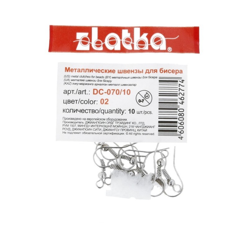 Швензы для бисера " Zlatka" DC- 070/ 10 - это та часть сережек, которая непосредственно вставляется в дырочку на мочке уха и является держателем декоративной части сережек. Иногда их также называют замочками, застежками для серег. Швензы- крючки - самый распространенный вид швенз. Представляют собой удлиненную петлю, которая удобно закрепляется в мочке уха. Идеально подходит для украшений с камнями и подвесками. Для повышения надежности крепления можно дополнительно использовать силиконовые заглушки арт. MFZ- 02. Без замка. Высота крючка 18 мм. 100% железо. Сообщить о неточности в описании