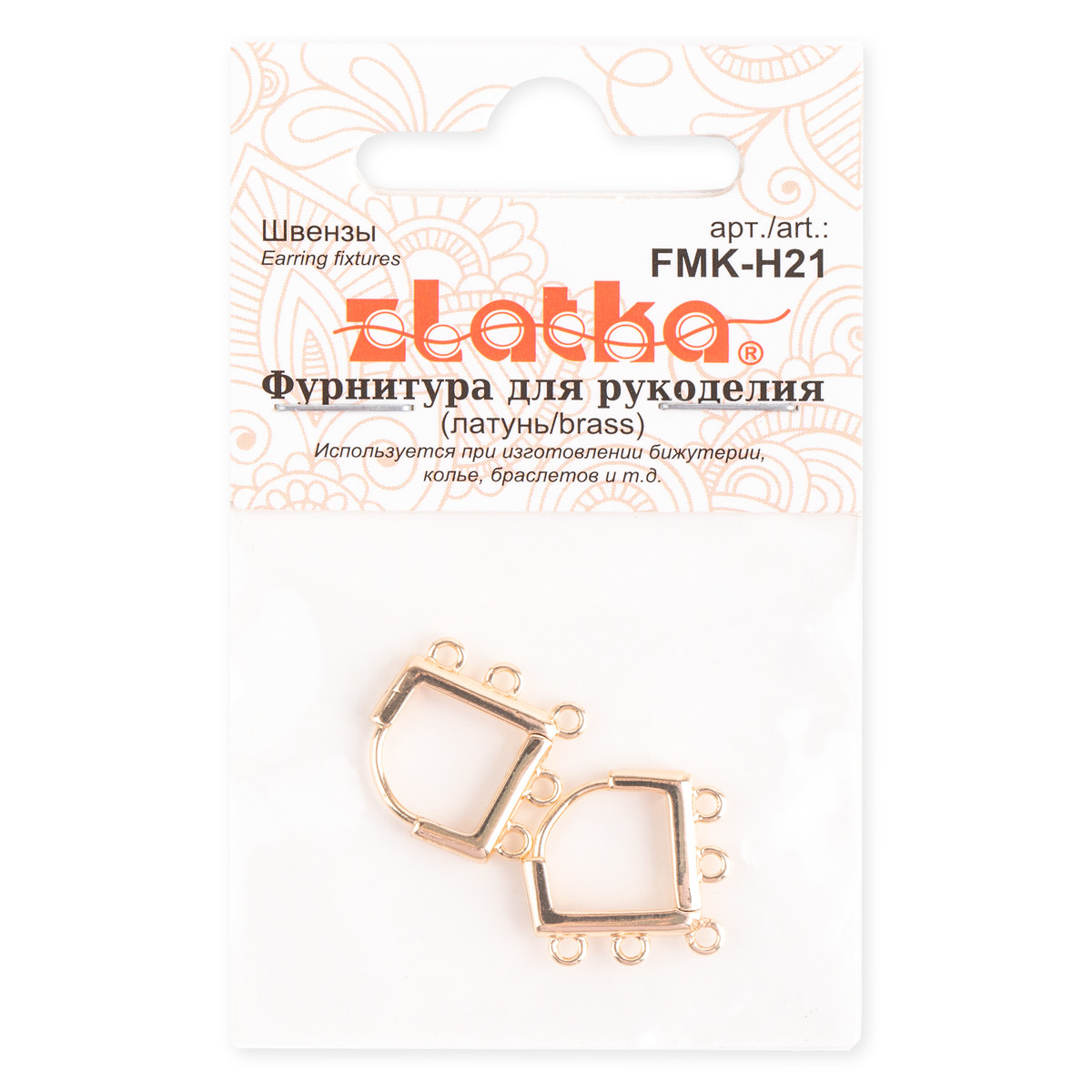 " Zlatka" Швензы FMK- H21 15 x 15 мм 2 шт 02 под золото