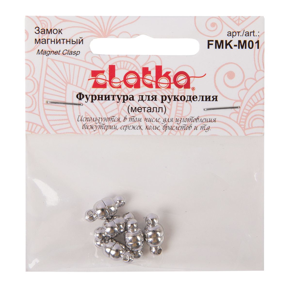Замок магнитный " Zlatka" FMK- M01 - это вид фурнитуры для бижутерии, используемой для застегивания браслетов, бус и колье. Магнитные застежки состоят из двух элементов, магнитящихся друг к другу. Элегантное решение для браслета или колье - смотрятся очень аккуратно и легко расстегиваются. Не рекомендуется использовать магнитные застежки для тяжелых украшений, так как под весом украшения застежка может самопроизвольно расстегнуться. Использование качественной фурнитуры играет очень важную роль при изготовлении бижутерии. От правильного выбора подвески, коннектора, замка или любой другой связующей части зависит целостность готового изделия. Размер 5х11 мм. Состав: латунь. Не содержит никель и свинец. Сообщить о неточности в описании